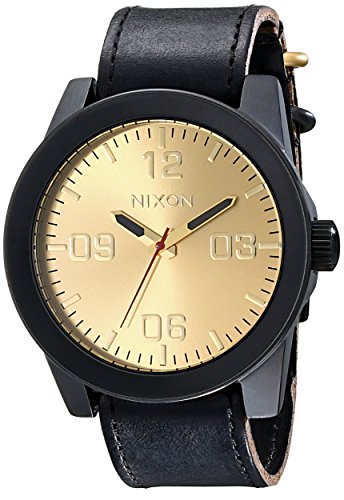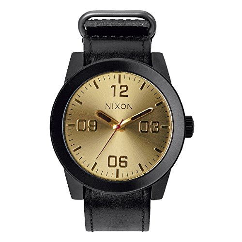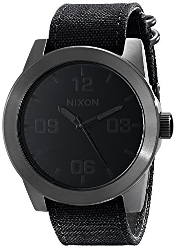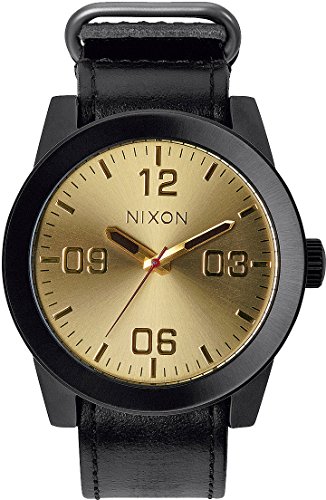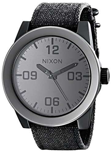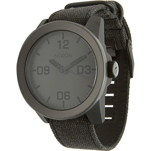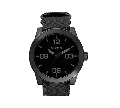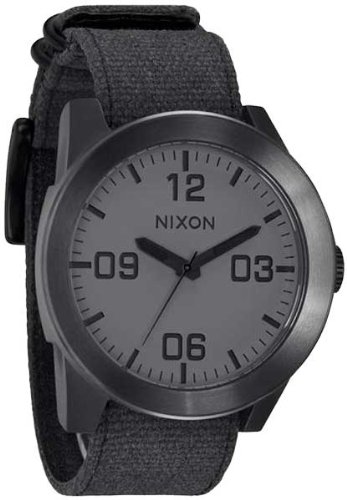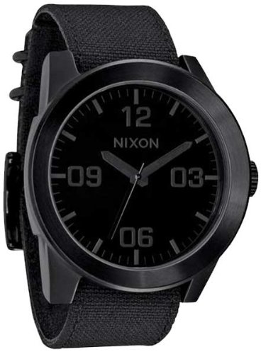 Studio : Nixon Publisher : Nixon Binding : Watch Product Description Reporting for duty with the new Nixon The Corporal wrist watch. Whether it's need for great looks or a rugged lifestyle the Corporal men's watch can with stand the pressure. With a stainless and enamel case and a modern day design The Corporal doesn't beat around the bush. Sign up today for the future of watches. PRODUCT FEATURES: Movement: Miyota Japanese quartz 3 hand. Dial: The dial includes military inspired bold printed indices and numbers, a printed seconds track and custom molded hands with luminous fill. Case: 48 mm, 100 meter/ 10ATM custom solid stainless steel case with a solid stainless steel fixed bezel, hardened mineral crystal, triple gasket crown with enamel fill, stainless steel screw down caseback and spring pin lugs. Band: 24 mm genuine leather or canvas with genuine leather backing and custom stainless steel buckle and keepers. A243 , Nixon The Corporal , nixon , nixon watches , nixon Corporal , the Corporal , the Corporal watches , the Corporal nixon watches , nixon mens watches , nixon the Corporal mens watch , wrist watches , automatic watches , sports watches , digital sports watch , ironman watches , running watches , led watches , watches , casual watches , classic watches , watches , wrist watches , mens watches , mens wrist watches , watches for men , watches mens , wrist watches for men , nixon , nixon mens watches , nixon mens wrist watches , nixon mens classic watches 0