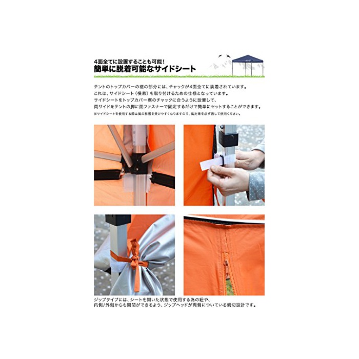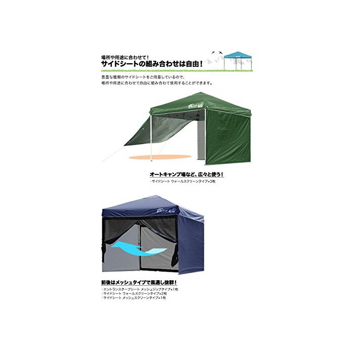 특기사항 이쪽의 상품에는 타프 텐트 본체는 부속 하지 않습니다.2.0m×2.0m 스틸제&알루미늄제 공통 타프 텐트 전용 싸이드 씨트 입니다.