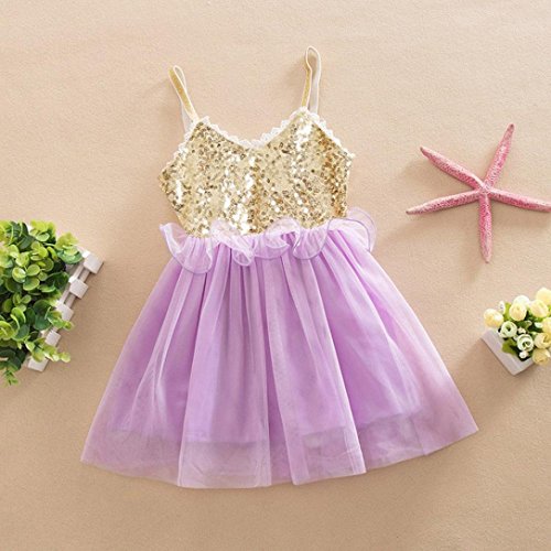 FEITONG Kids Girls Princess Sequins Tulle Lace Tutu Slip Dress (Age:1-2Y, purple)