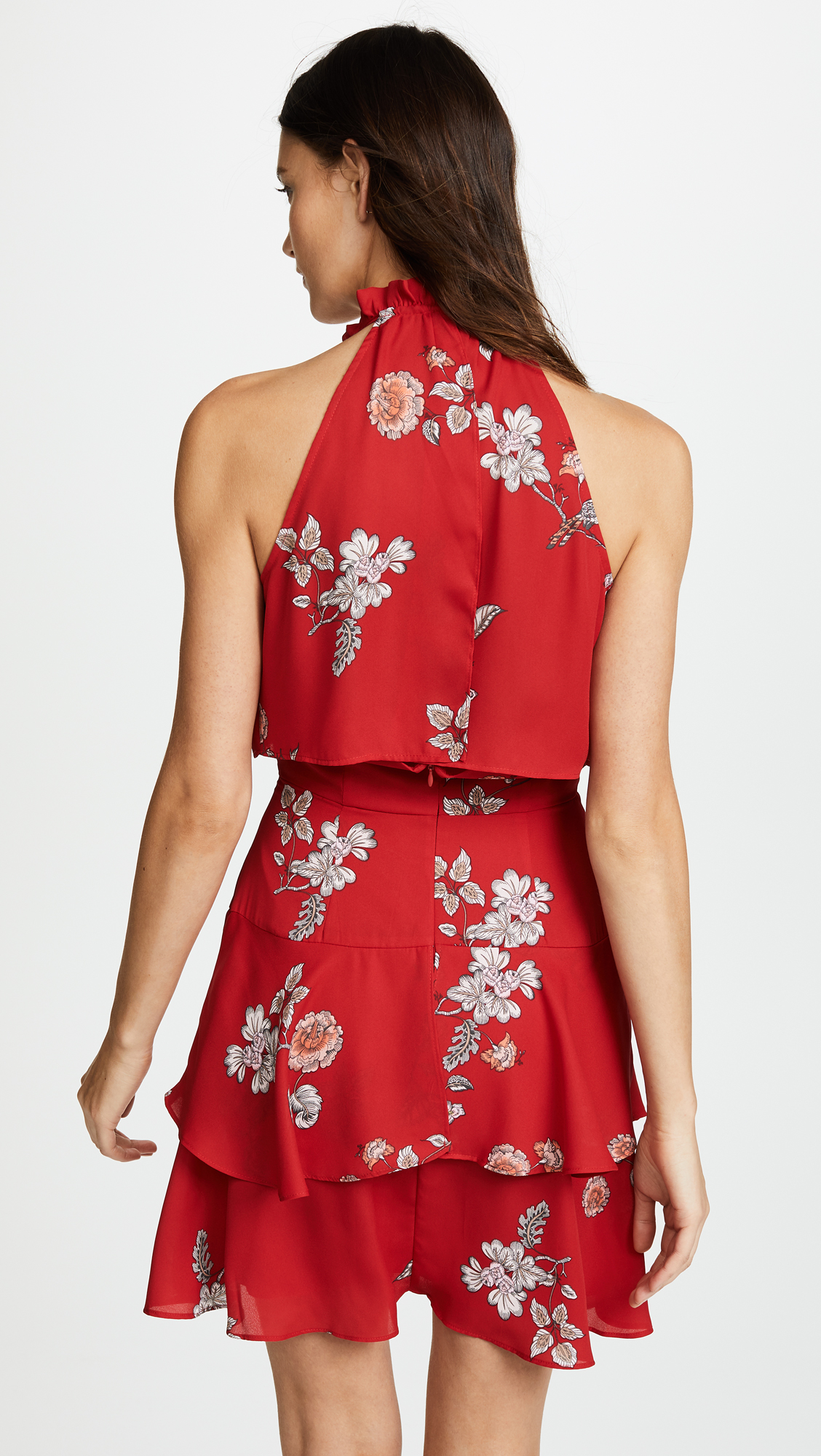 Fabric: Crepe Floral print Mini-dress cut Halter neck Sleeveless Hidden zip at back Open back Lined Shell: 100% polyester Hand wash or dry clean Imported, China Style #BBDAK42226