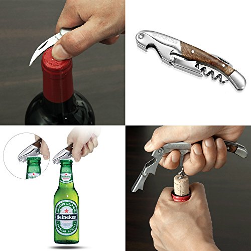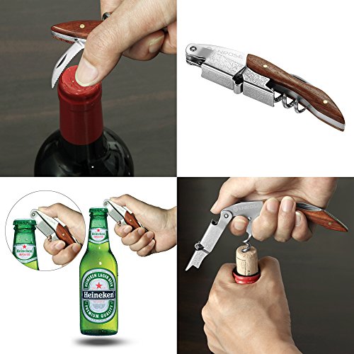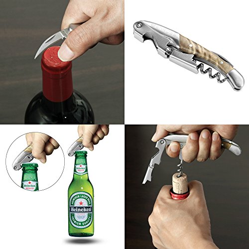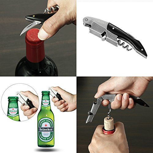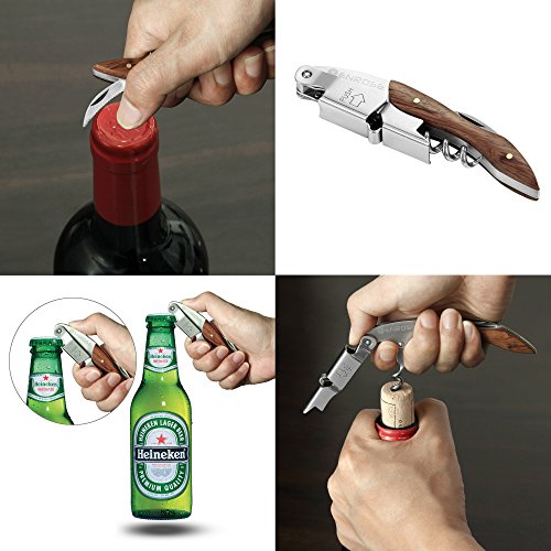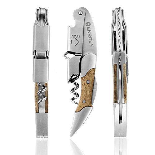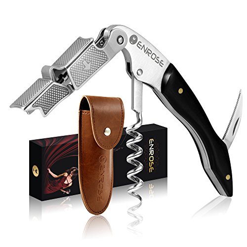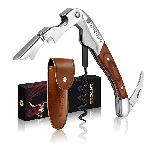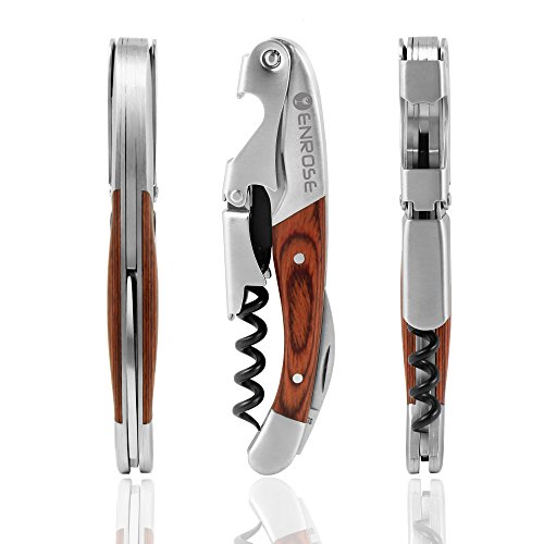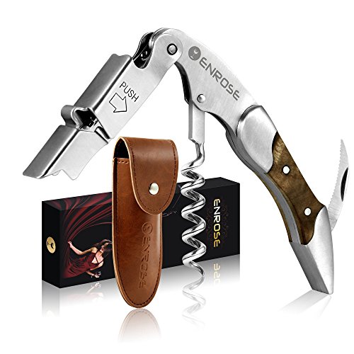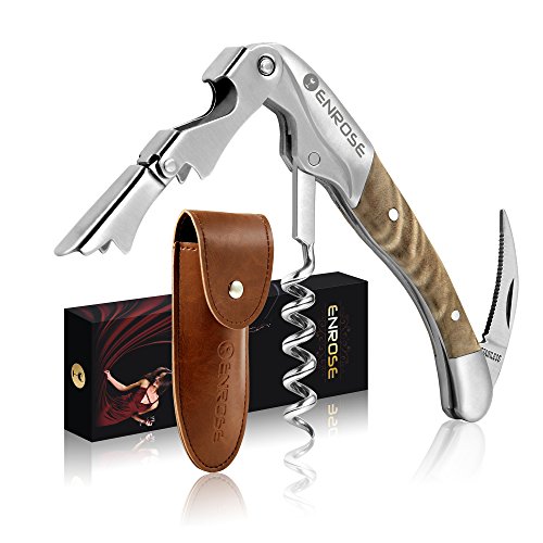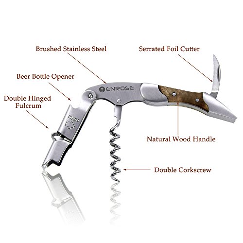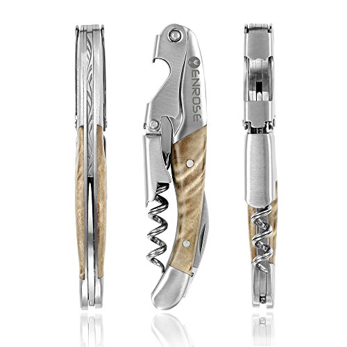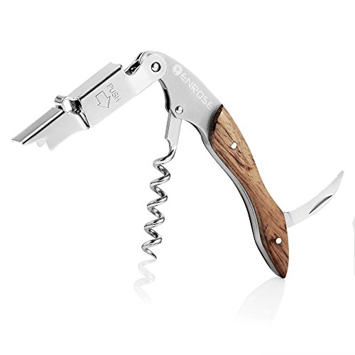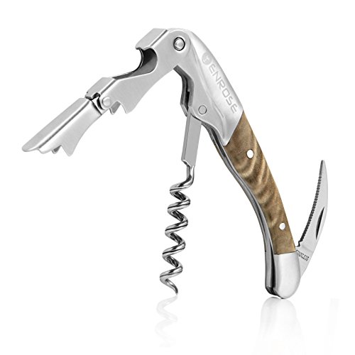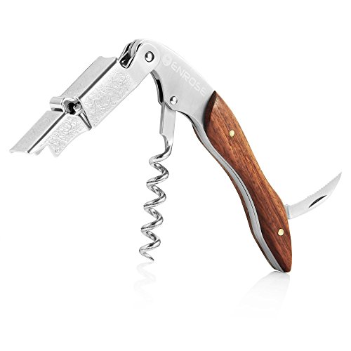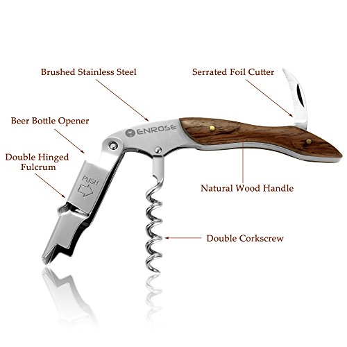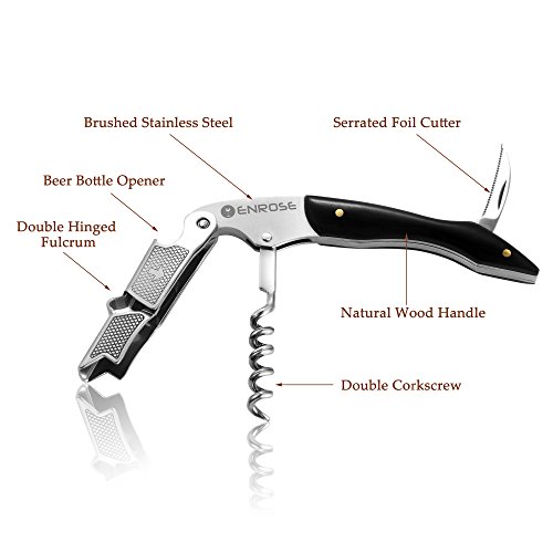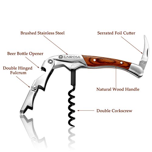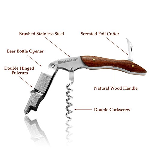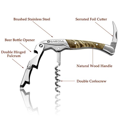 ENROSE Premium Corkscrew Wine Bottle Opener and Foil Cutter Wood Handle Stainless Steel Double-Hinged All-in-one Wine Key Perfect Gift for Wine Lovers
