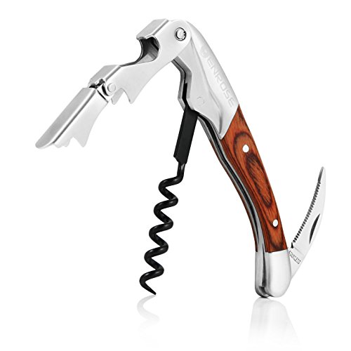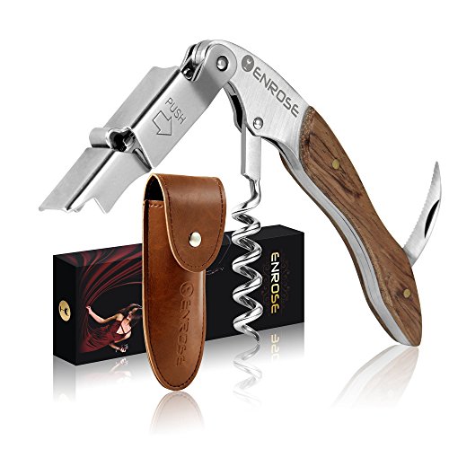 ENROSE Premium Corkscrew Wine Bottle Opener and Foil Cutter Wood Handle Stainless Steel Double-Hinged Wine Key Perfect Gift for Wine Lovers