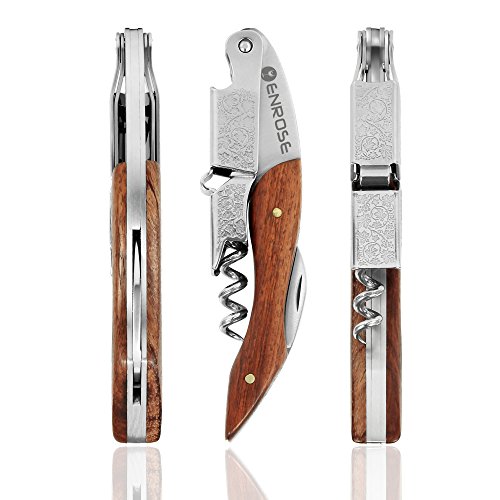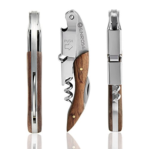 ENROSE Premium Corkscrew Wine Bottle Opener and Foil Cutter Wood Handle Stainless Steel Wine Key Perfect Gift for Wine Lovers