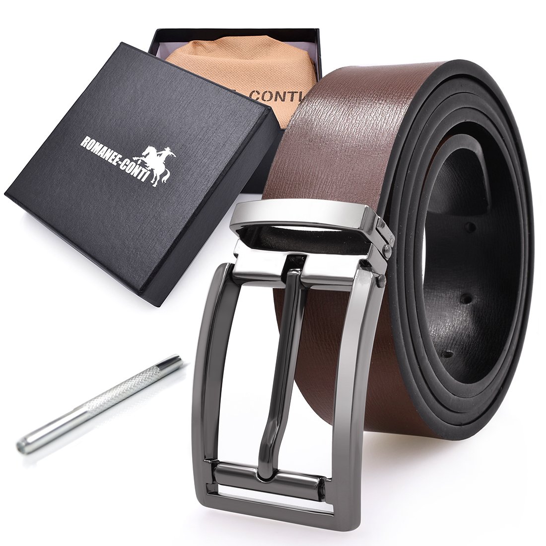 Belt that can be used on both sides, black for business, brown for casual.