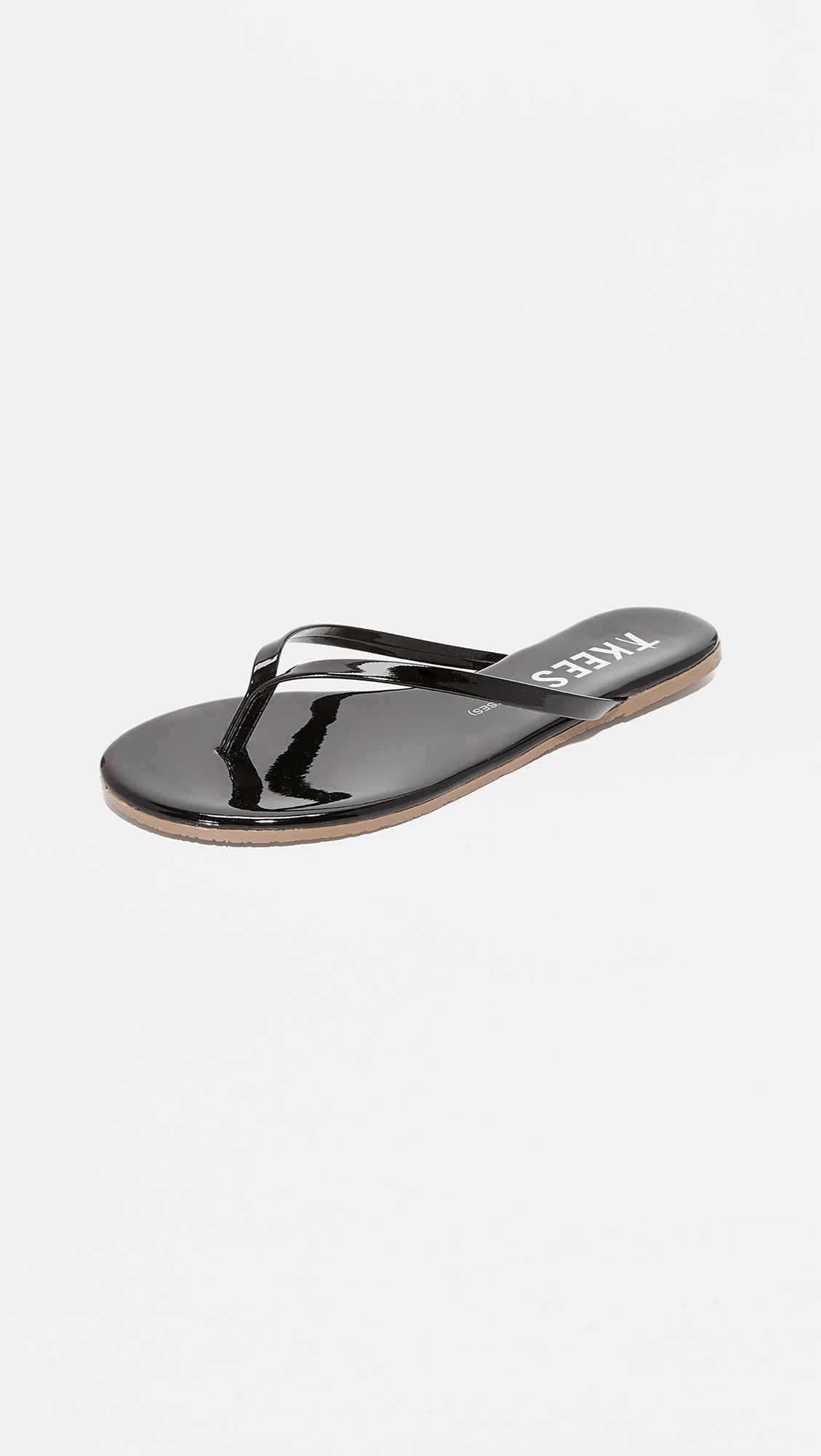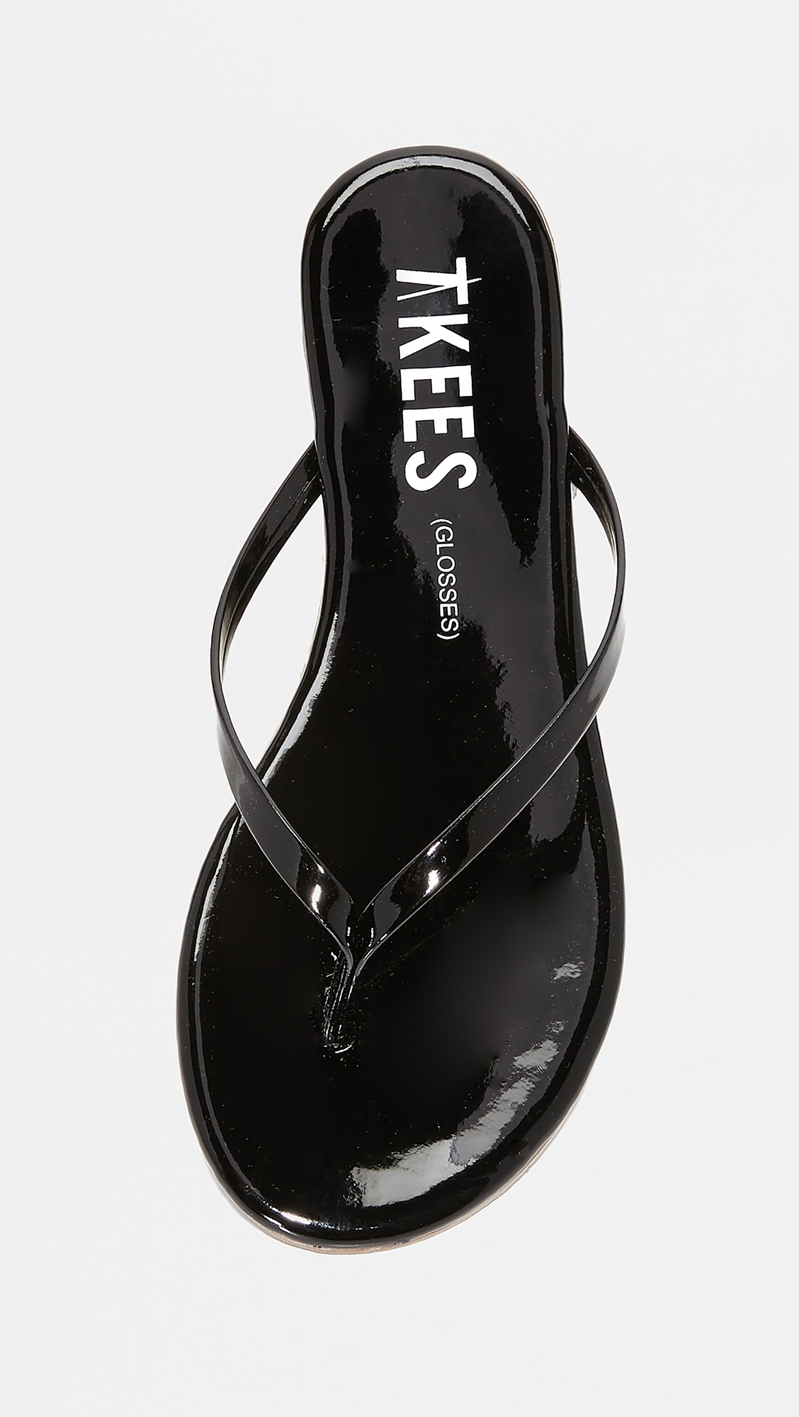 Glossy patent TKEES flip-flops with a slim thong strap. Rubber sole.