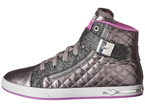 Soft fabric upper features quilting and allover glitter details.