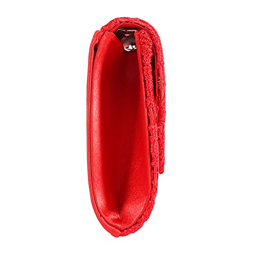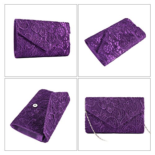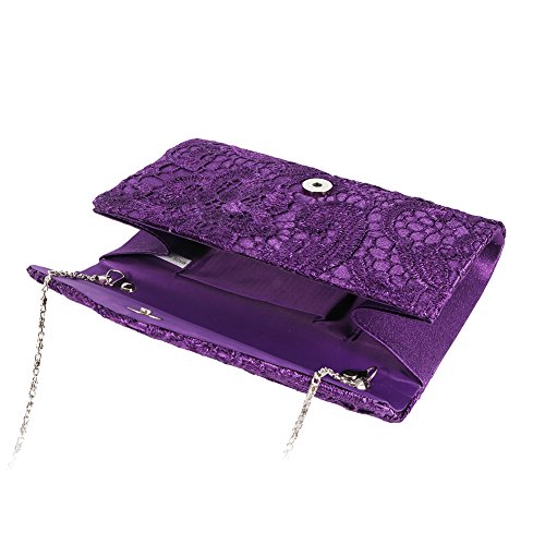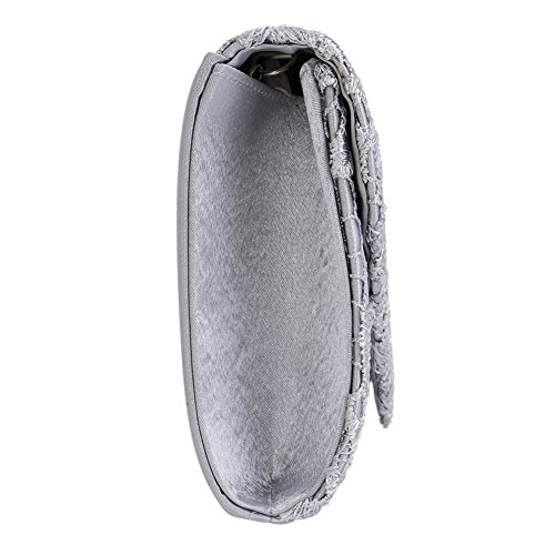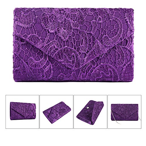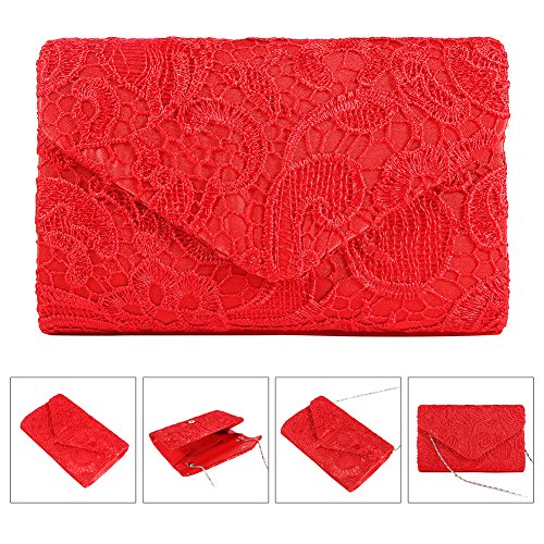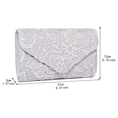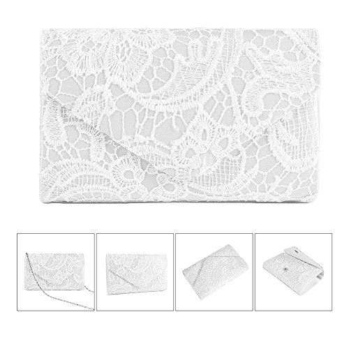 Features: 100% brand new and high quality! Material: Satin Lace Dimension: 9.85*5.12*1.97 inch (21*13*5 CM) Detachable strap: 46.49 inch (118 CM) Description: Very Beautiful Satin Diamante Bags Made With High Quality Satin Fully Lined Each Bag Has A Shoulder Chain Or Hand Held Chain Perfect for Wedding Parties or a Night Out This elegant evening envelope style clutch is made of lace satin that will make you glow during your special occasion. Inside can easily fit a cell phone, wallet, compact mirror, lip gloss, and a pack of gum. Conveniently, you can spend the night hands free with the detachable silver chain that is included.