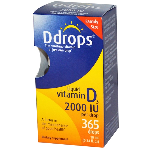 Ddrops, Liquid Vitamin D3, 2000 IU, 0.34 fl oz (10 ml)