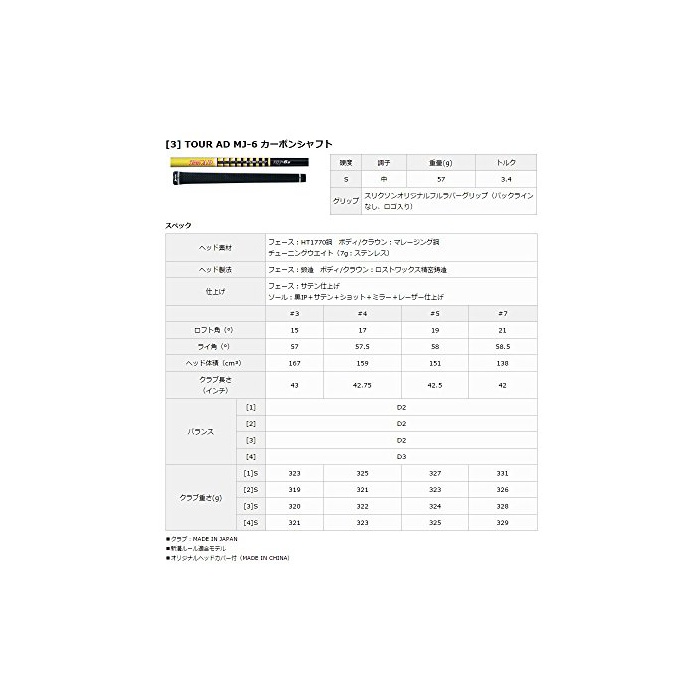 원본상품명: DUNLOP(ダンロップ) SRIXON Z F45 フェアウェイウッド TOUR AD MJ-6 カ?ボンシャフト ロフト角:15度 番手:3W フレックス:S