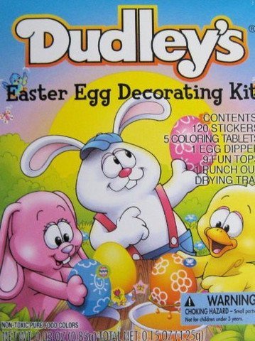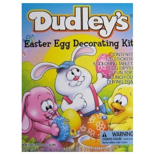 Studio : Dudley's Publisher : Dudley's Binding : Office Product Product Description Dudley's Easter Egg Decorating Kit 02, Have Fun Decorating Easter Eggs, Includes: 120 Stickers, 1 Egg Dipper, 5 Coloring Tablets, 9 Fun Tops and 1 Punch Out Drying Tray 0