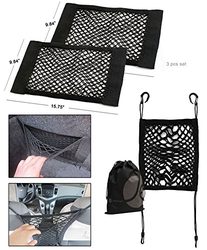 2 pack of car Velcro storage nets, Nets organizes groceries, bottles, drinks, food, sport items, etc.