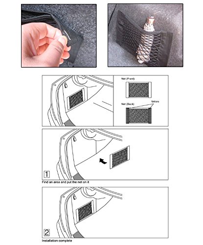 Organize the clutter in your car with these 2 car Velcro storage nets. This 2 pack comes with 2 Velcro nets. The Velcro net is a great way to add additional storage room in your car for bottles, sport equipment, groceries, shopping bags, etc. The universal nets are compatible with most car models. Easy to use, the net features Velcro on the back for easy and secure installment. Organize the clutter in your car with these 2 car Velcro storage nets.