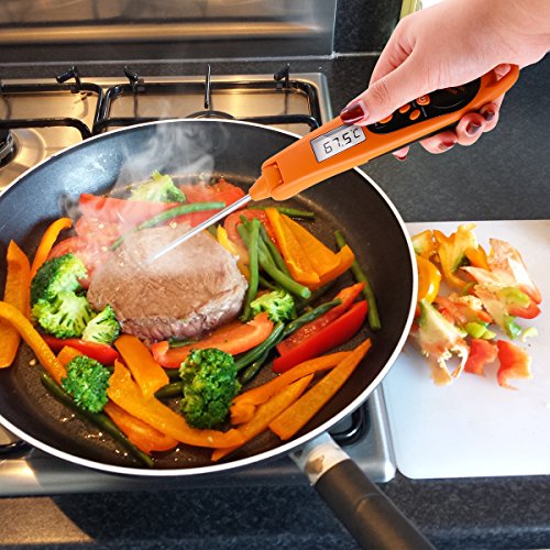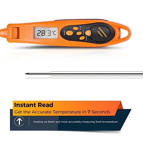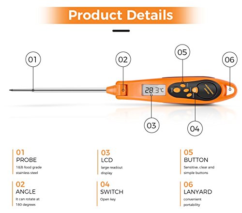Studio : lvsomt Publisher : lvsomt Product Description High Performance - Quick and Accurate Read: LCD display Instant Reading Thermometer gets temp readout within 4-7 seconds with high precision sensor - Wide Temperature Range : Temperature measurement range of -50ºC (-58°F) to 300°C (572º F) - Auto Shutdown : Automatically shuts off after 5 minutes. (Battery Included) - Design and Construction :Made of high quality 304 stainless steel,The probe can fold,Water-proof - Warning:NEVER use the thermometer in a closed oven Specifications - Response Time: 4-7seconds to within 1°F of final temperature in moving boiling water - Accuracy: ±0.9°F @ -4 ~ 302°F (±0.5°C @ -20 ~ 150°C) - Range: -58 ~ 572°F (-50~ 300°C) - Battery: 1x LR44 - Battery Life: 500 hours - Auto-Off: 5min - °F/°C Configurable: Yes 0