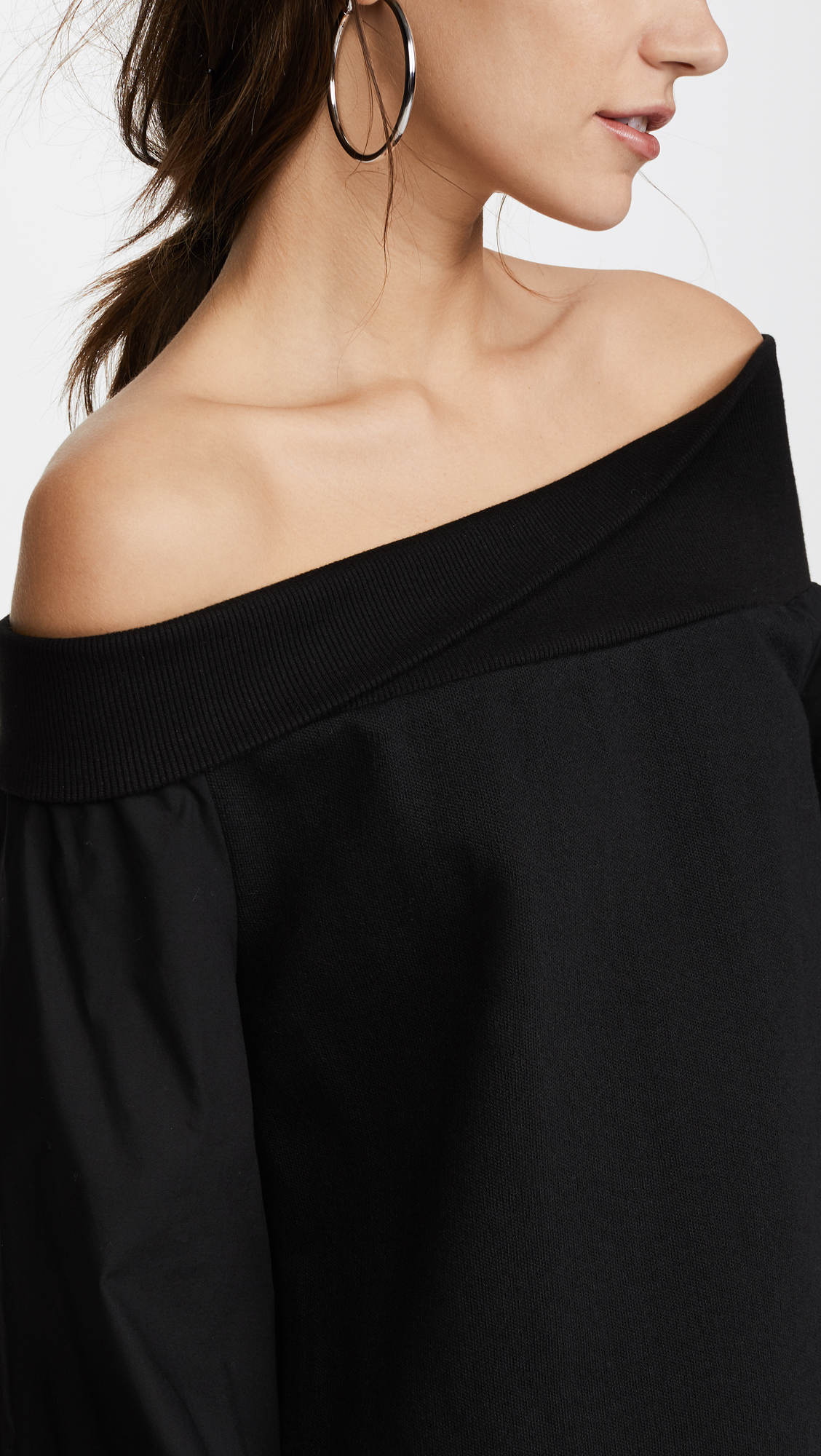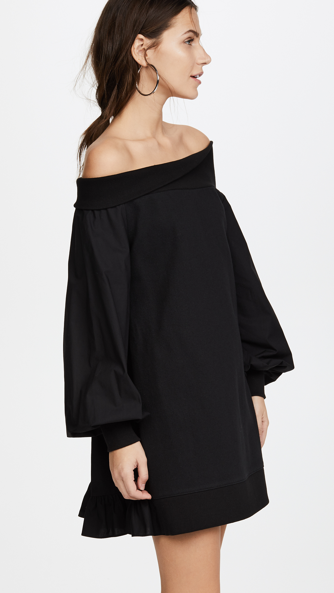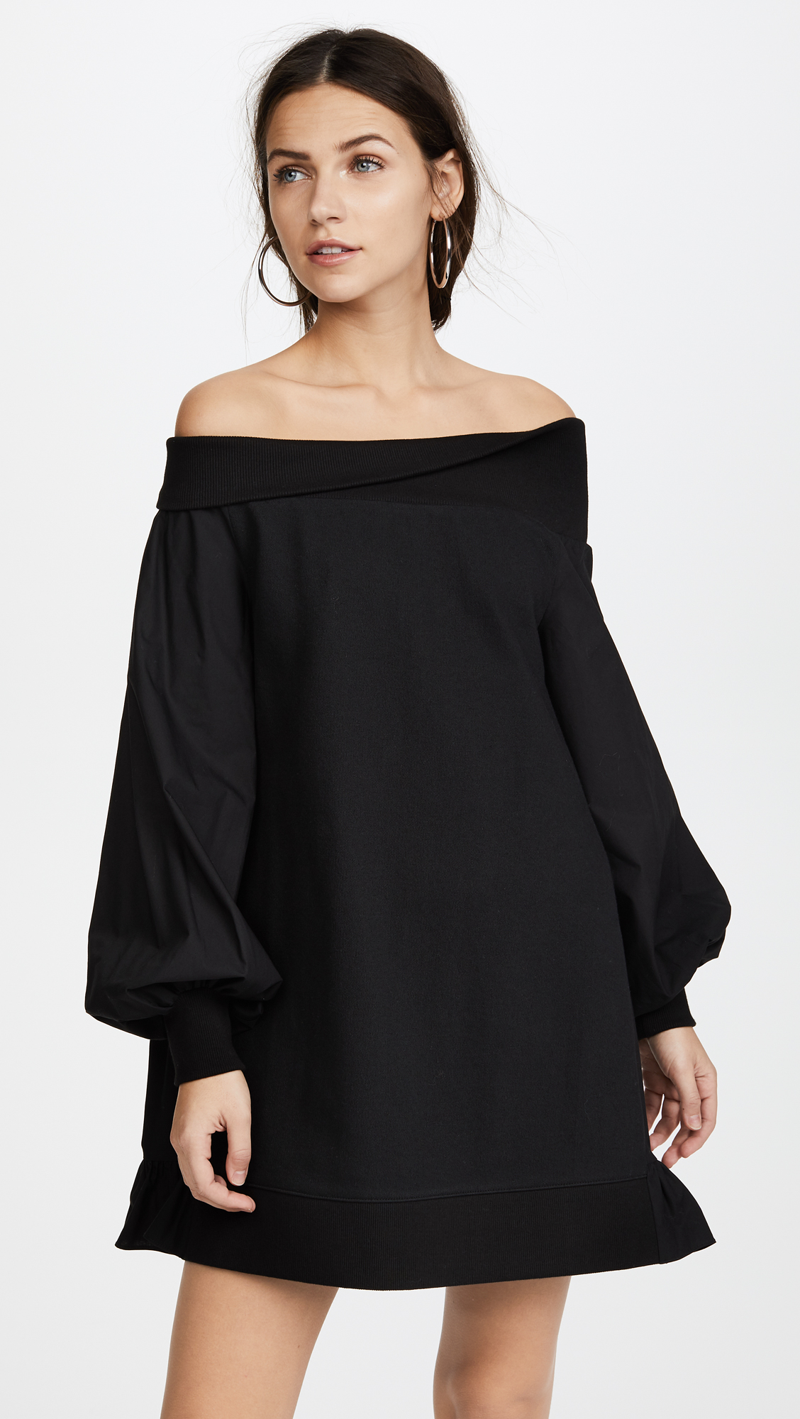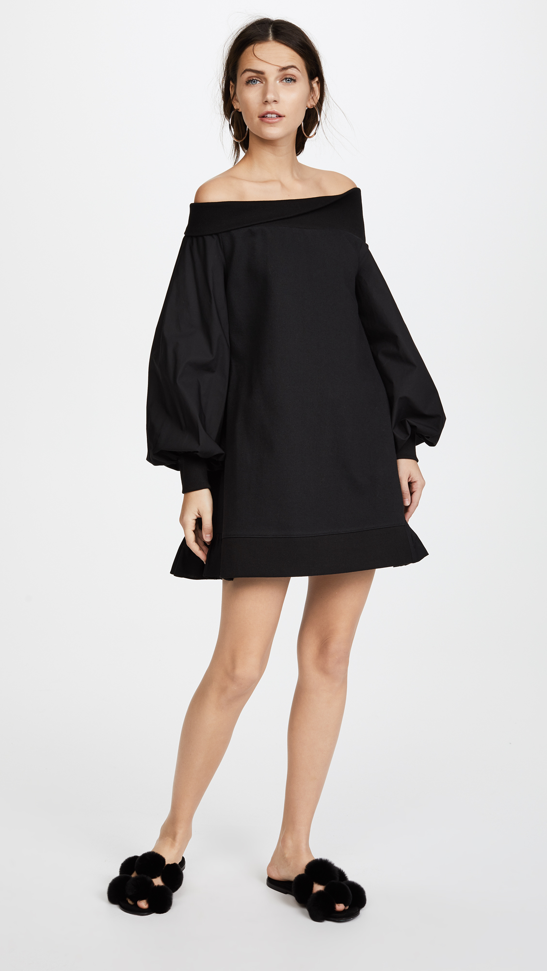 Fabric: Plain weave A-line silhouette Mini dress cut Off-shoulder neckline Long sleeves Open back Shell: 100% cotton Dry clean Imported, Korea Style #GOENJ30104
