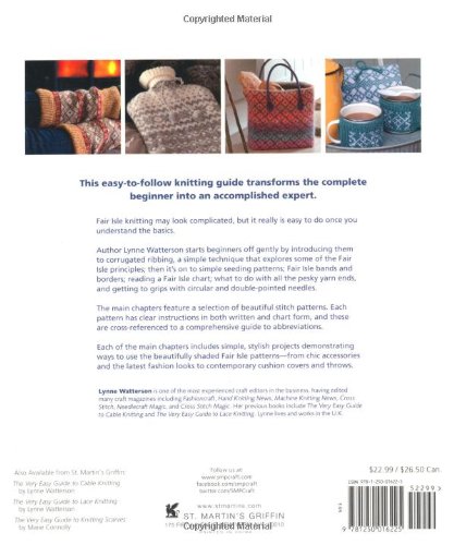 Fair Isle knitting may look complicated, but knitting expert Lynne Watterson lays out the basics in a way that is easy to follow and understand. She starts with an overview that covers everything from the best types of yarn suitable for Fair Isle patterns to beginner knitting techniques. Also included is a primer on how to read Fair Isle charts, plus an illustrated step-by-step guide to Fair Isle knitting showing complete beginners how to hold the yarns, strand across the back of knitting, link colors in, and how to weave in ends.