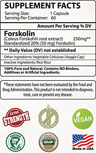 -. Title : 100% Pure Natural Forskolin Extract 60 Capsules - Best Weight Loss Fat Burner - Coleus Forskohlii Root Standardized 20% - 60 Diet Pills - 1 Month Supply