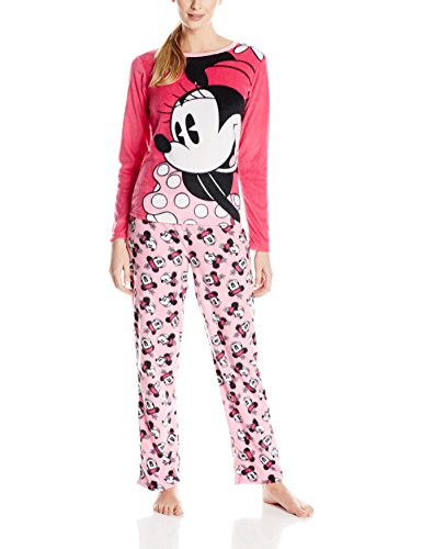 Disney Women's Ladies Minky Pajama Set Minnie, Pink, Large