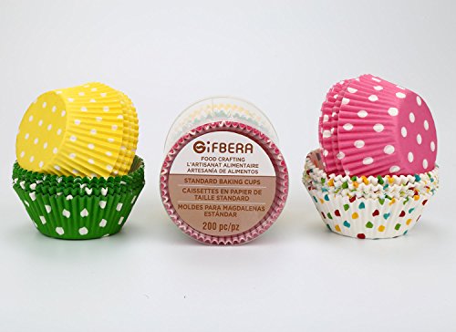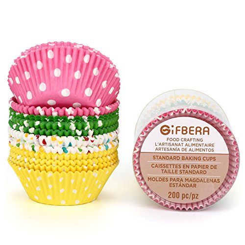 Gifbera Standard Size Paper Baking Cups / Cupcake Liners, 200-Count, Multi Color