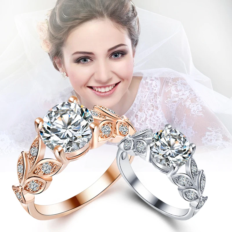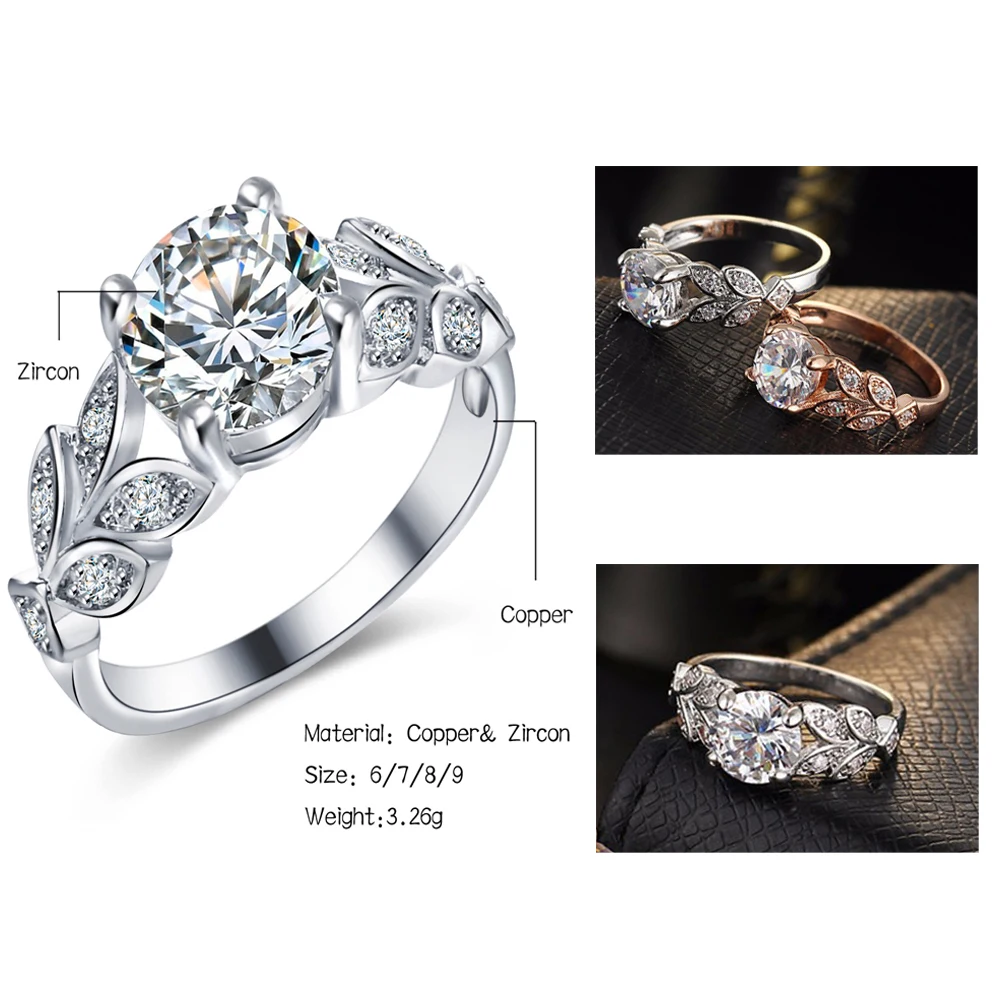 Design :Women Ring Flower Ring Cubic Zirconia Ring Leaves Ring Ring Women