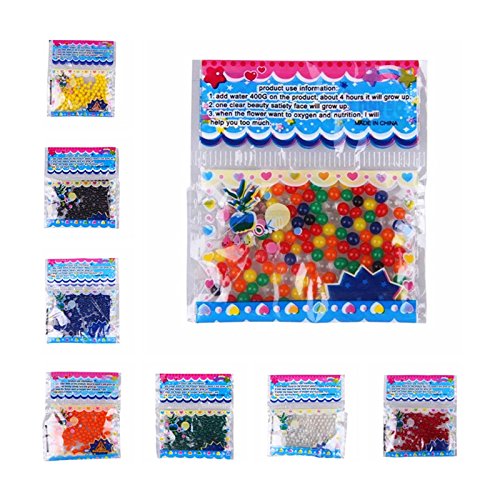Perfect for:Parties & Wedding Centerpiece,decoration,Fresh cut flower and Bamboo, Floating candles, Air Freshener, etc. 10 Bags (3grams/bag-10 Colors) of Crystal Soil Water Beads. Reusable up to 2 years, Non-fade, Non-Toxic, 100% Biodegradable, Non-Flammable. Harvest Size: 3 grams of Crystal Soil dry under maximum hydration (24 hrs) will yield about 2 cups of round bouncy crystal soil beads. Please keep out of reach of infants. You will receive very small beads in your package, you must put the beads in water for them to grow like in the pictures above!Feature