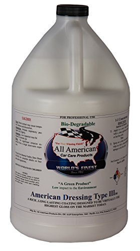 [Product Information]- AMERICAN DRESSING TYPE III Is a Professional Rich Gloss Tire Dressing & Long Lasting Coating Protectant Designed to be Virtually be The Highest Gloss Tire Dressing in the Market Today. An All purpose non-solvent dressing That will Restore faded body side moldings, Vinyl, Leathers, Plastic and Rubber For longer wear. 1-1 concentrate when used on Interiors Directly from Manufacturer to You.