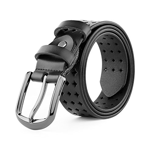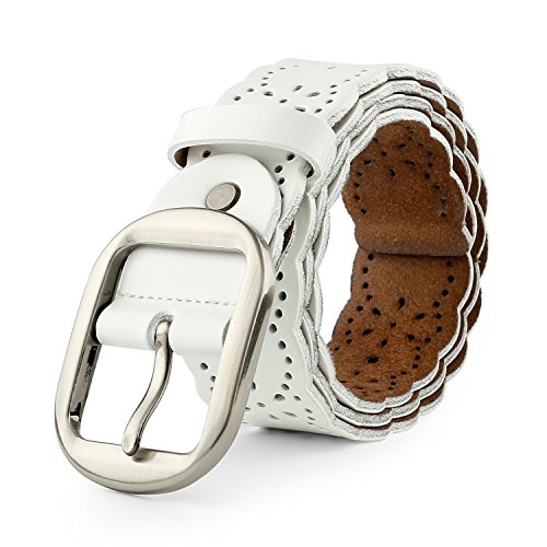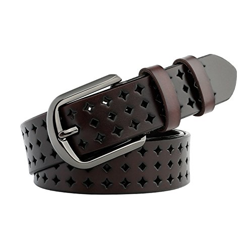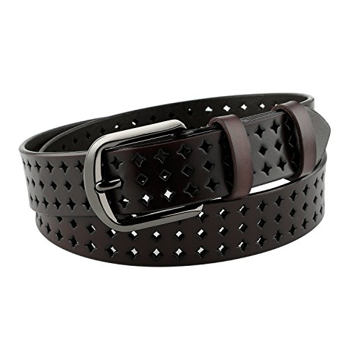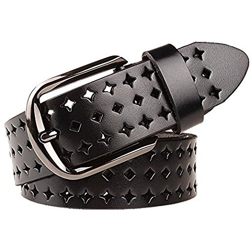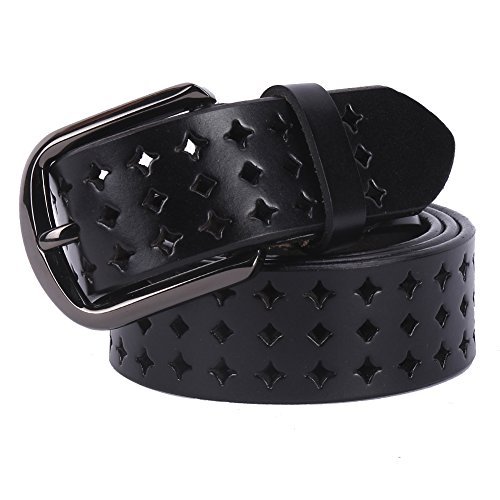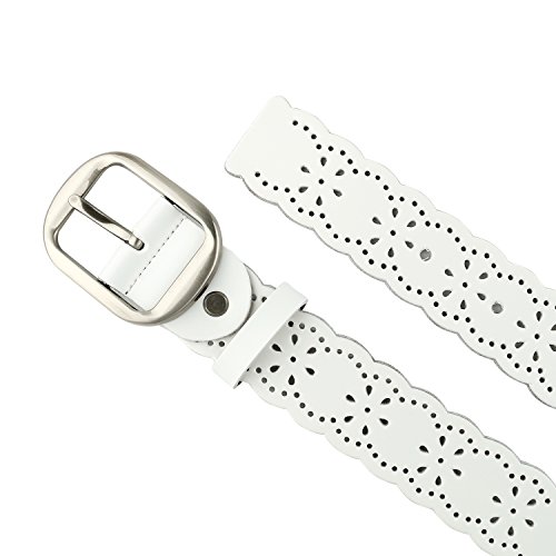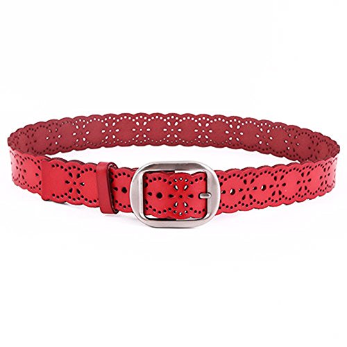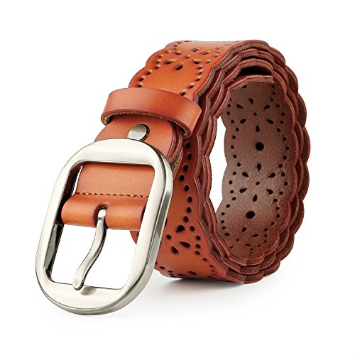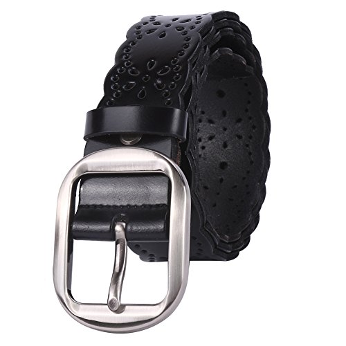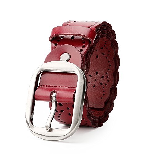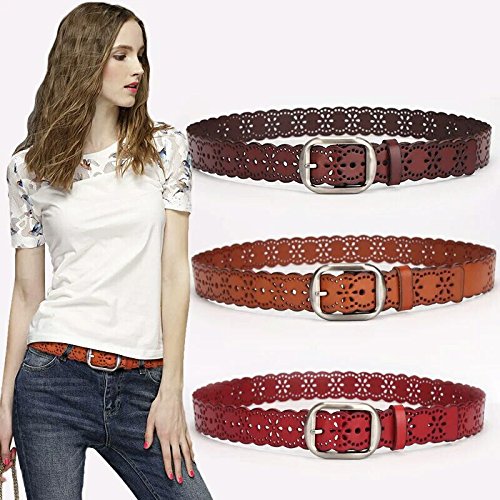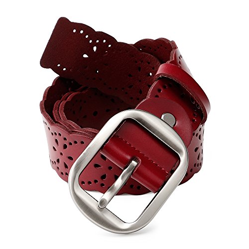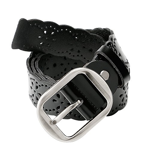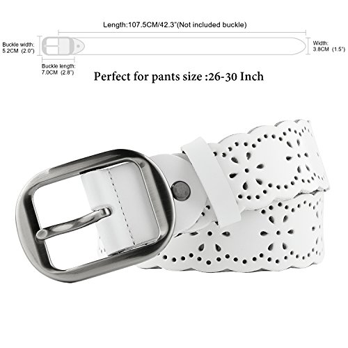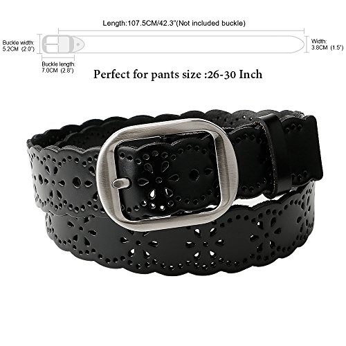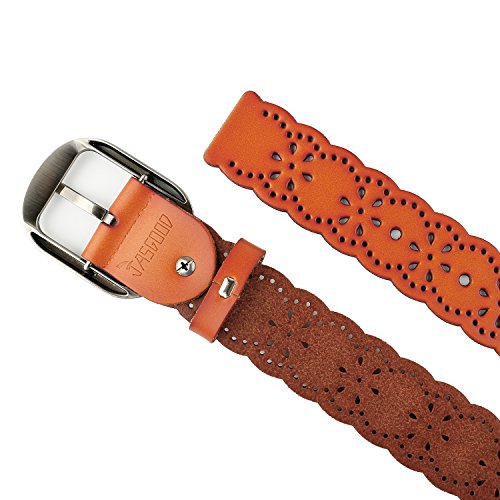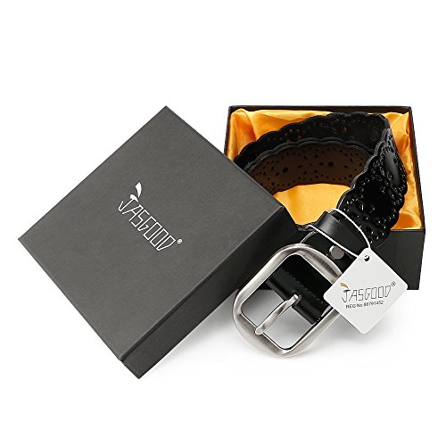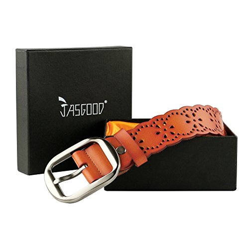 JasGood Women's Hollow Flower Design Genuine Cowhide Leather Wide Waist Belt With Alloy Buckle for Jeans-- as a perfect decoration for your outfit and it would be fashion to wear for any occasion and would help liven up your outfit. JASGOOD Women Belt JA018 Product Features: 1.Belt Size:The total length not included buckle is 107.5cm(42.3 Inch), included buckle is 111cm(43.7 Inch). Strap width is 3.8 cm(1.5 Inch). 2.Buckle Size:Buckle length: 7 cm(2.8 Inch), Buckle Width:5.2cm(2Inch). 3.Material: Genuine Cowhide Leather Alloy Buckle 4.Hollow flower design makes the belt more unique and fashion. 5.If the belt is too large to you, you can cut off a piece of the buckle area or punch a hole in the belt. 6.Suitable for ladies for everyday casual wear to formal occassions Notice We guarantee the quality of our products, but sometimes because of the different display color factors and shooting when ambient light and other factors, so in a sense of color and material will be slightly different , We hope you can understand.