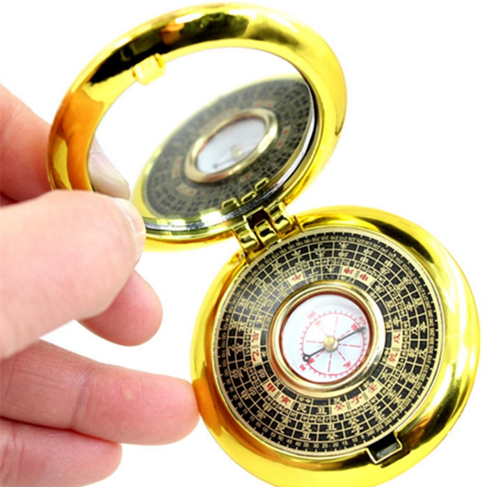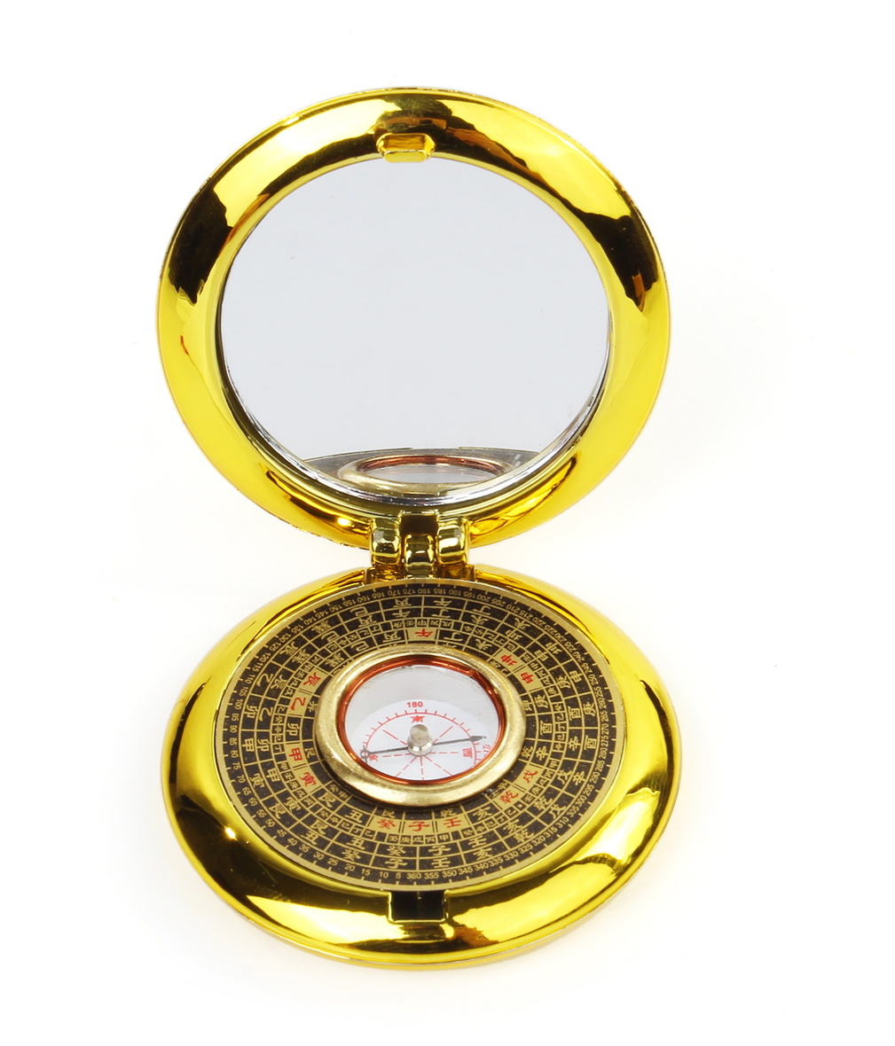 風水 羅盤 カバー付き ゴールド ポケット コンパス 八卦鏡 六帝銭 セット 魔除け 厄除け 守護 開運 幸運ctr-g56【1~2日発送】