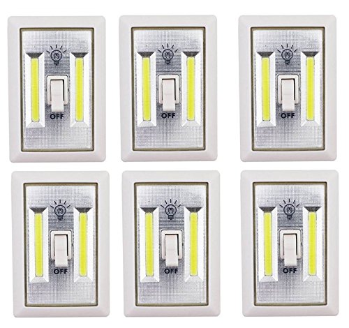 Set Of 6 LIGHT-SWITCH Battery Operated Cordless Light Using Super Bright COB LED Technology for Baby Nursery, Hallways, Bedrooms, Closets, RV's. No Wiring-Batteries Included - 6 Pk