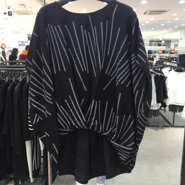 #전판 빗살무늬 밑단 턱 블라우스여름에 시원하고 편안하게 입을 수 있는 패턴 블라우스 입니다.