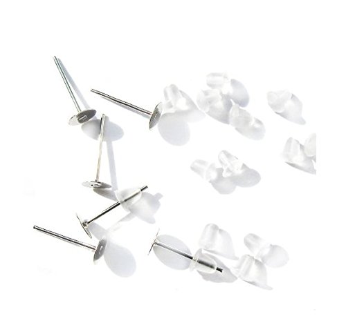 - 100 Stainless Steel 5mm Flat Pad (With 12mm Post) Earring Finding Plus 100 Rubber Earnut Stoppers Package