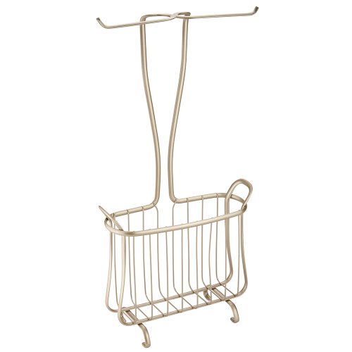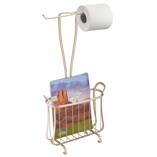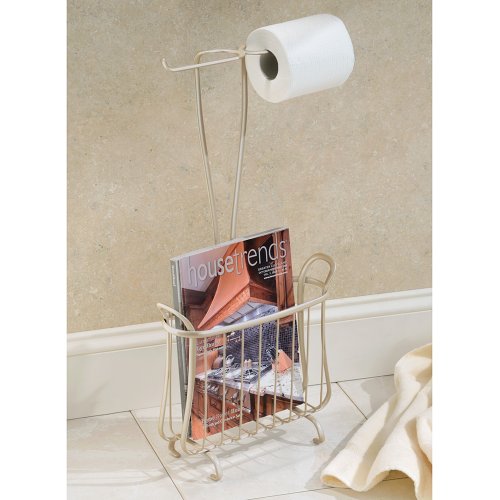 InterDesign Axis Free Standing Toilet Paper Holder and Newspaper and Magazine Rack for Bathroom - Pearl Champagne
