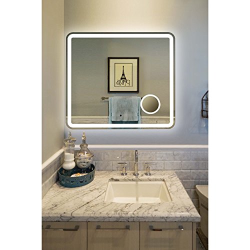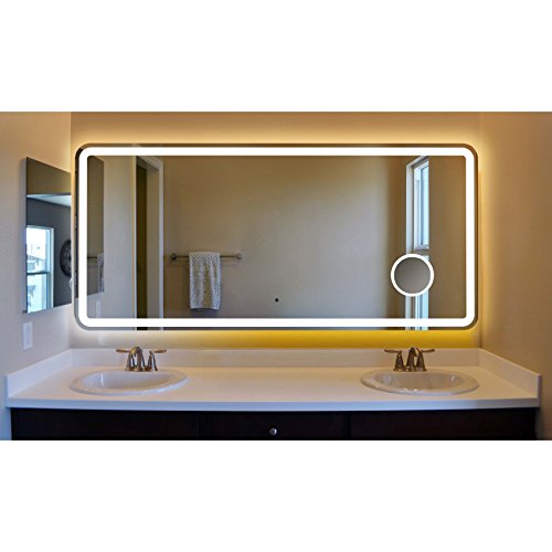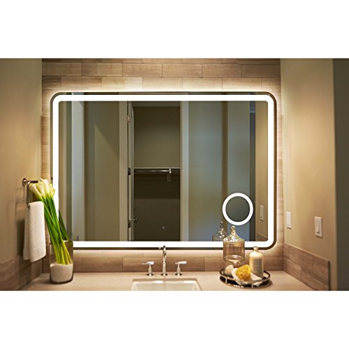 Innoci-USA 63662432 Electra Rounded Arc Corner Rectangle LED Wall Mount Lighted Vanity Mirror Featuring Built-In Cosmetic Mirror