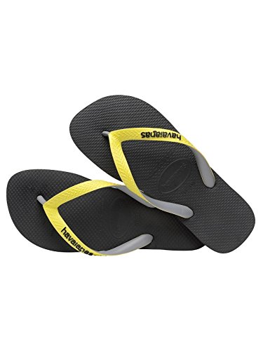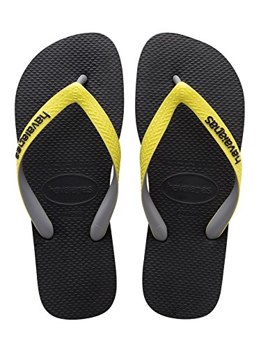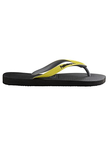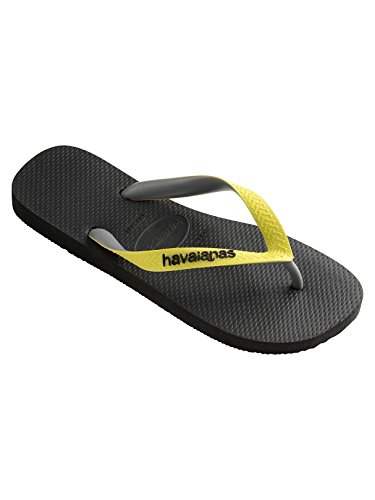 Studio : Havaianas Publisher : Havaianas Binding : Apparel Product Description From Havaianas comes the Top Mix Flip Flops in Black/Yellow colour, featuring logos on the straps. Made from rubber, this pair of flip flops also sport traditional Y-shaped straps. 0