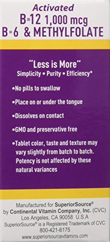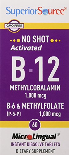 Superior Source No Shot Methyl B12 1,000mcg./B6/Methylfolate 1000 Mcg 60 count is a combination of activated B-12 (methylcobalamin), activated Folate (L-5 methyltetrahydrofolate) and B-6, which are three critical B vitamins required for control of elevated homocystein levels.