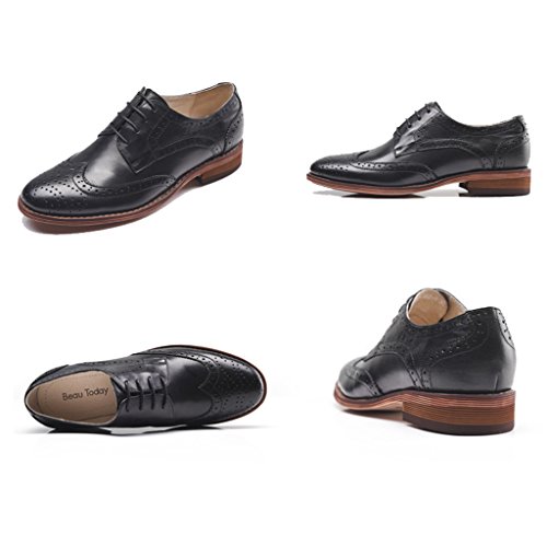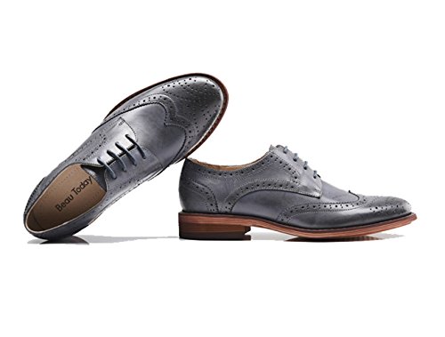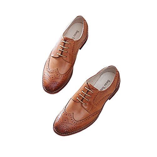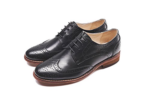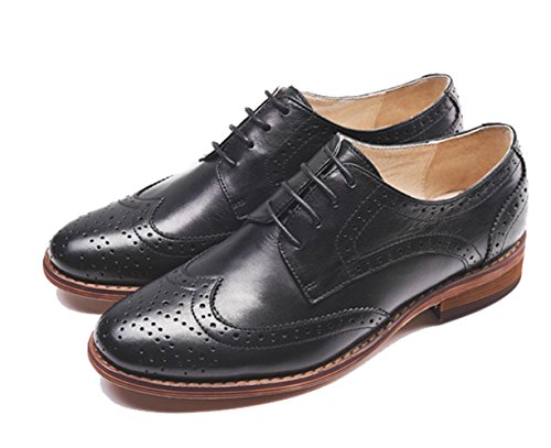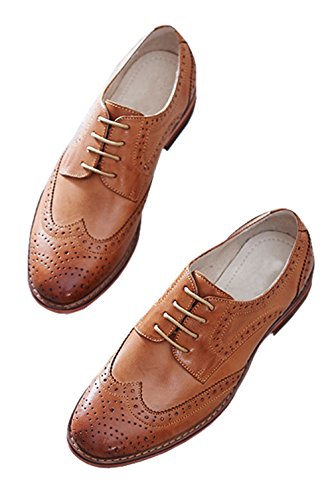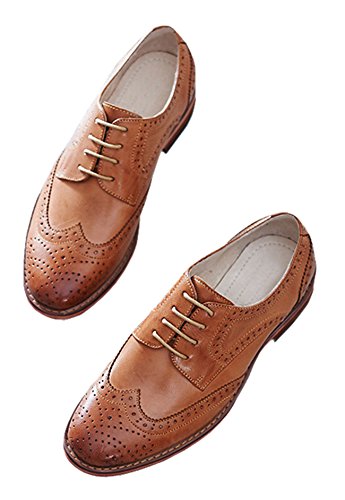Product DescriptionU-lite Women's Perforated Lace-up Wingtip Pure Color Leather Flat Oxfords Vintage Oxford Shoes0