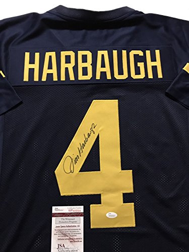 Autographed/Signed Jim Harbaugh Michigan Wolverines Blue Football Jersey JSA COA