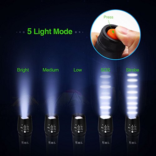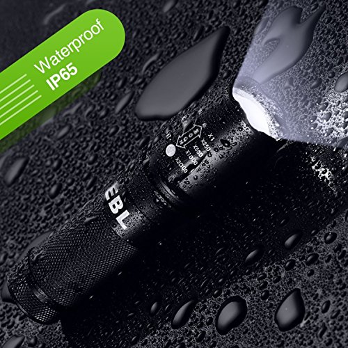 - Daily Water Resistant: IP65-rated waterproof, freewheeling use EBL Tactical flashlight in rain or snow,No affected by splashing water. but please don't put it into water directly.