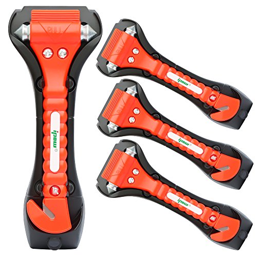 4 PCS IPOW Car Safety Antiskid Hammer Seatbelt Cutter Emergency Class/Window Punch Breaker Auto Rescue Disaster Escape Life-Saving Hammer Tool,Big
