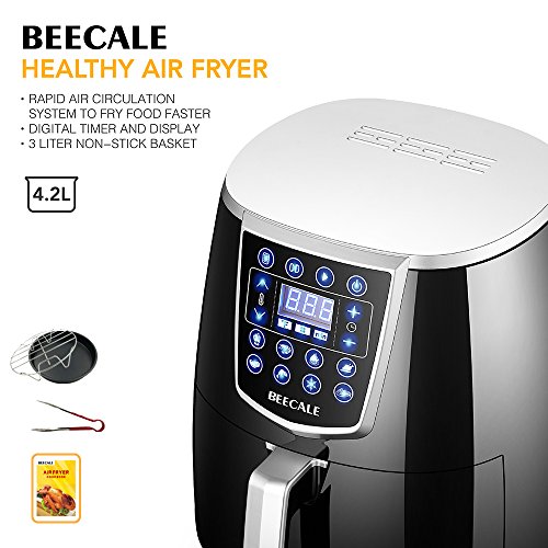BEECALE air fryer . Includes recipe book and Airfryer Baking set. It is an innovative cooking equipment,Big and easy to see touch screen control, new intelligent experience,8Preset Settings,allows you to quickly and easily, delicious cooking of food, you can Fried, grilled, baked or roasted anything, from the French fries, onion rings to the steak, cake and vegetables, etc.