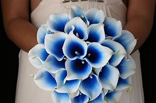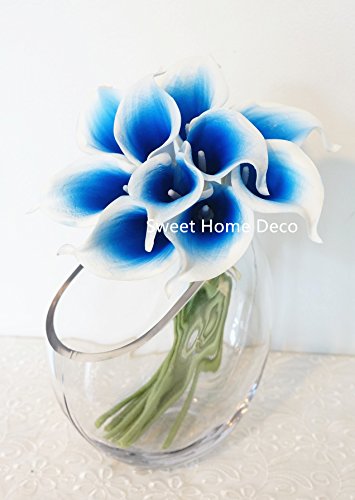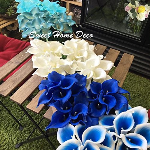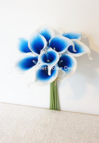 Sweet Home Deco Latex Real Touch 15" Artificial Calla Lily 10 Stems Flower Bouquet for Home/ Wedding (Dark Blue)