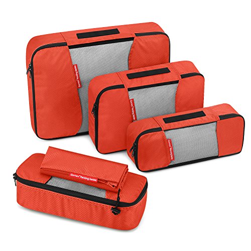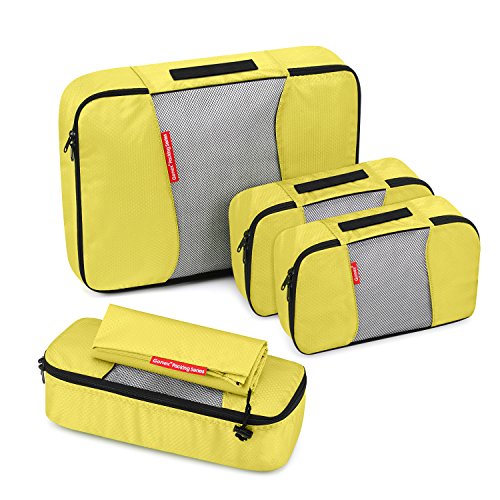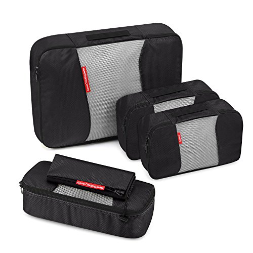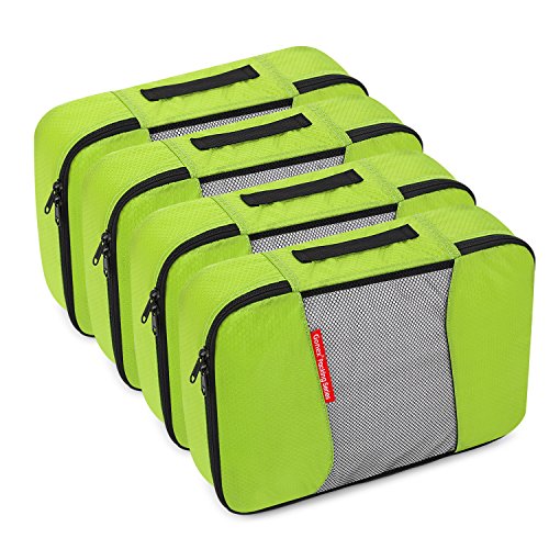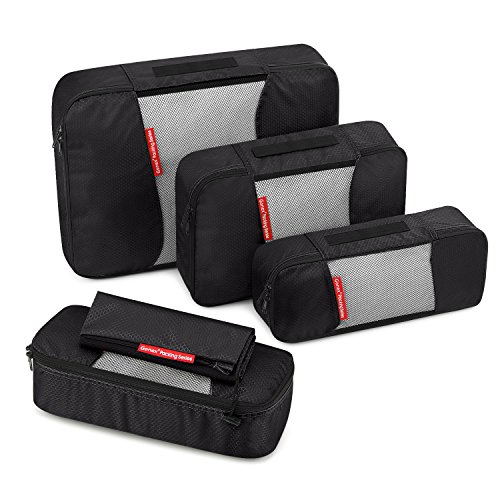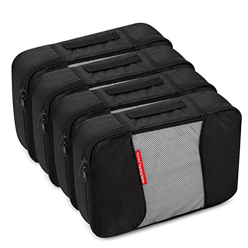 Travel Packing Cubes, Gonex Luggage Organizers 4SlimGonex Packing Cubes feature breathable, mesh-top panels that offer not only important ventilation, but also at-a-glance viewing for easily identifying what's inside. It allows you to easily store and organize your clothing that makes it easy to pack and even easier to unpack. What's more, they are sized to fit perfectly in your luggage and hotel drawers. It is perfect for a two-week trip like summer camp because they can neatly pack all your clothes tightly in one carryon and a small backpack.