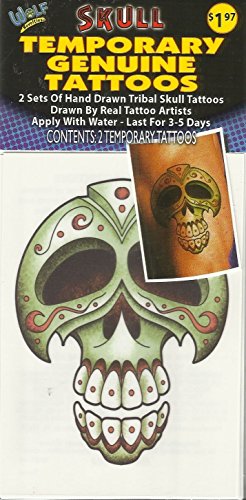 SKULL TEMPORARY GENUINE TATTOOS (2 SETS OF HAND DRAWN TRIBAL SKULL TATTOOS (1 PACK - 2 TATTOOS)