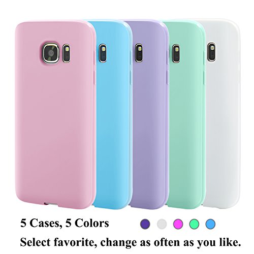 Galaxy S7 case, Pvendor 5 Pack Slim Frosted Flexible Back Cover Scratch Resistant Matte Silicon Soft TPU Gel Rubber Case Protective Bumper Skin for Samsung Galaxy S7(2016)- White/Pink/Blue/Purple/Mint