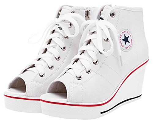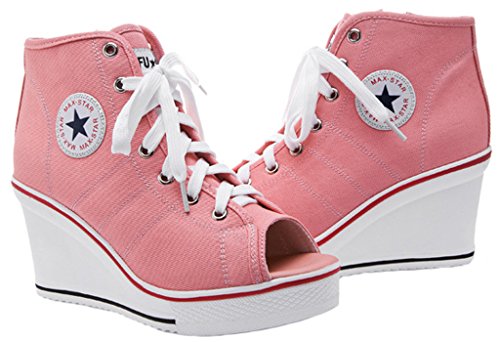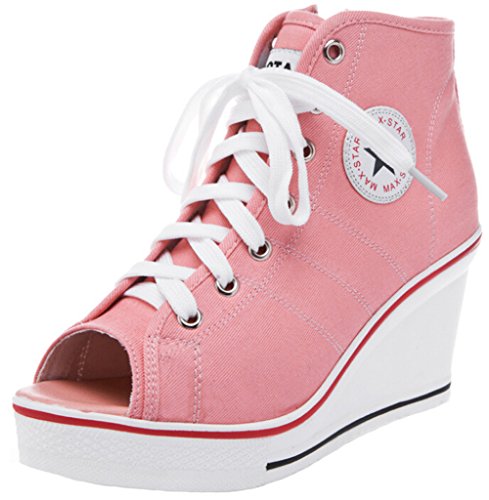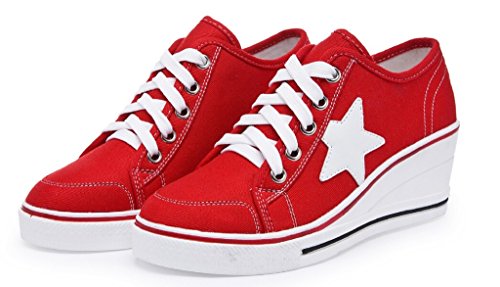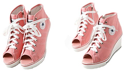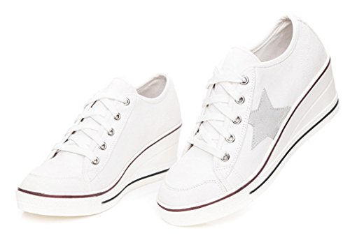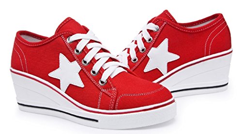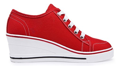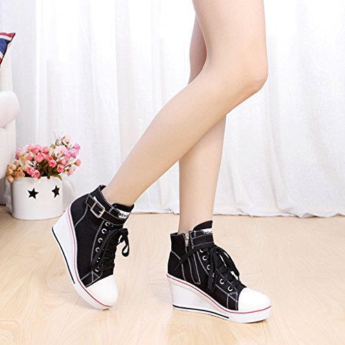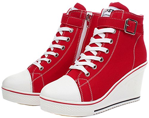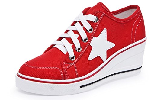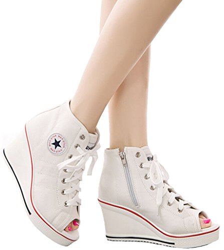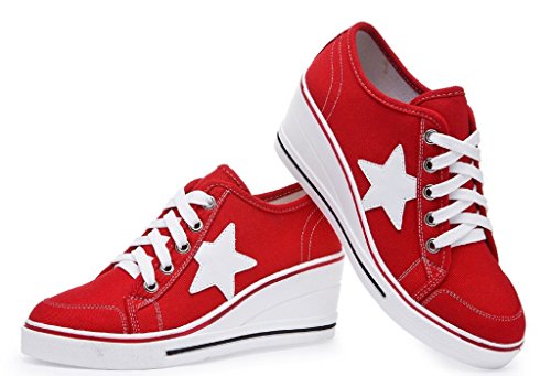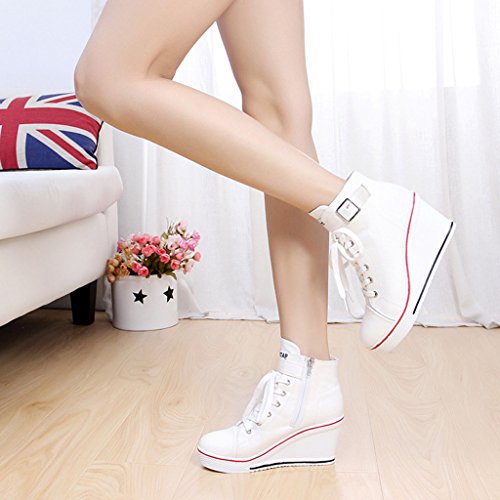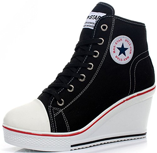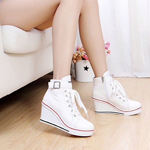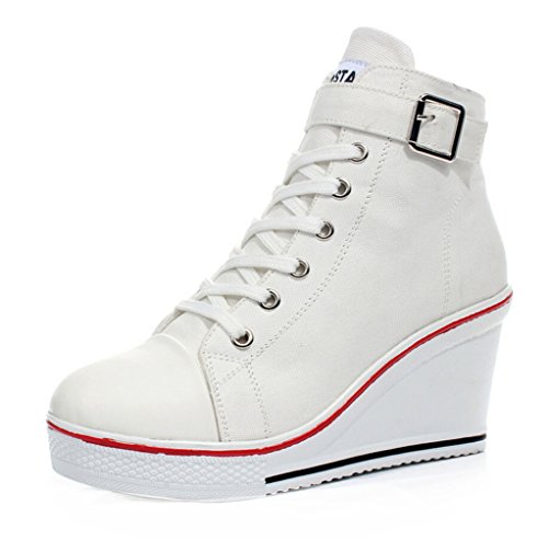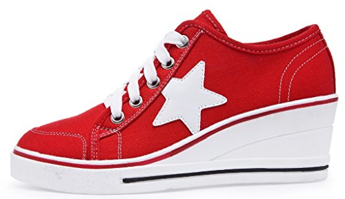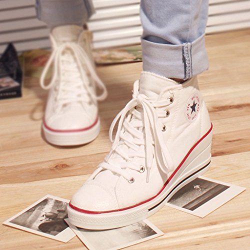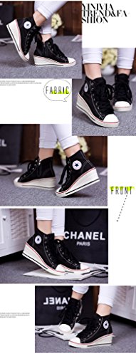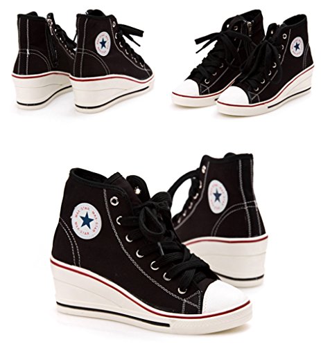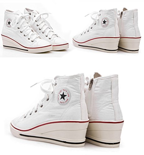 | Jiye Women's Canvas High-Heeled Fashion Sneaker Pump Shoes |