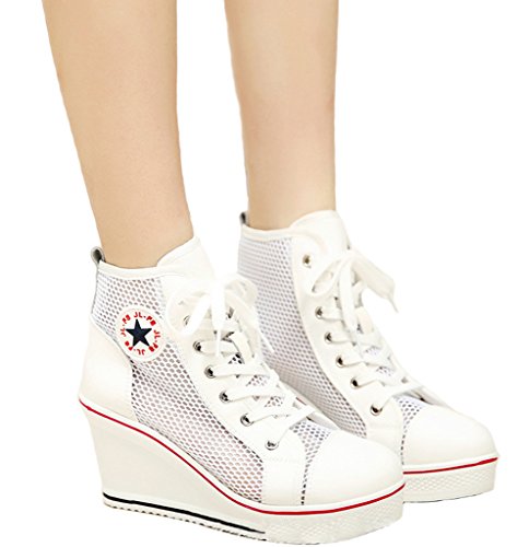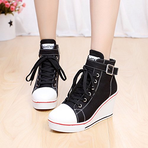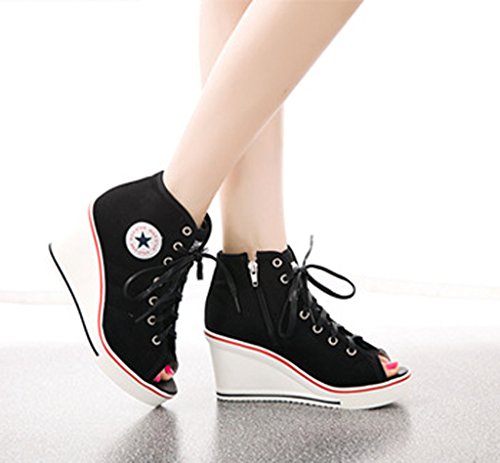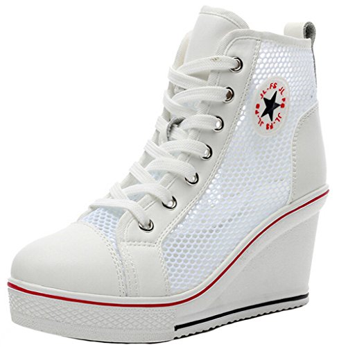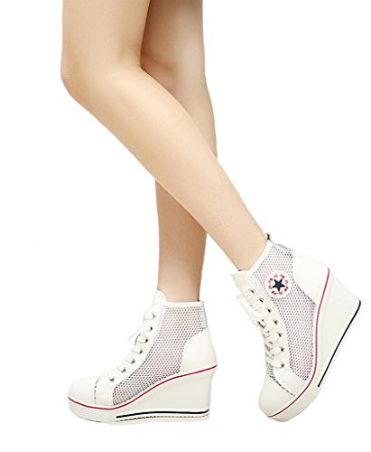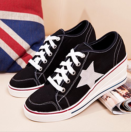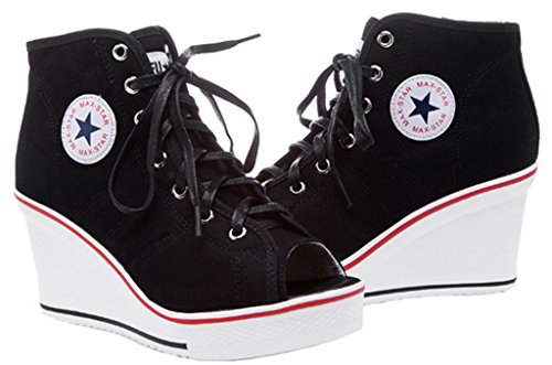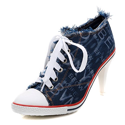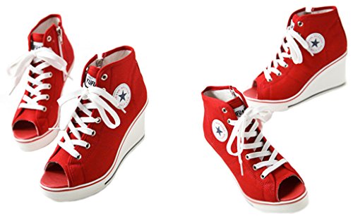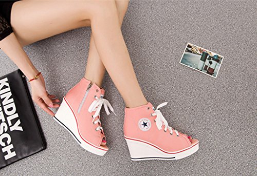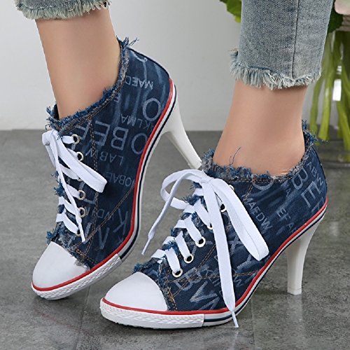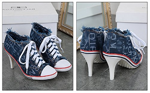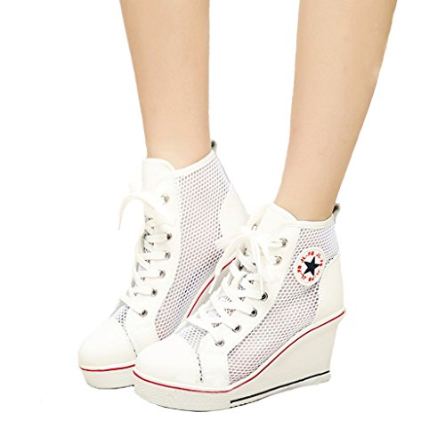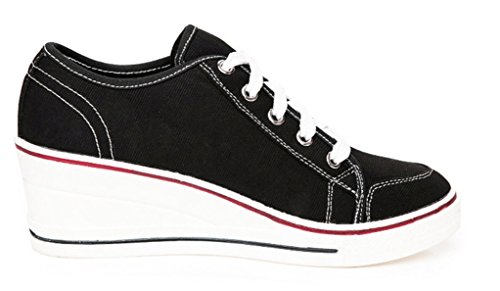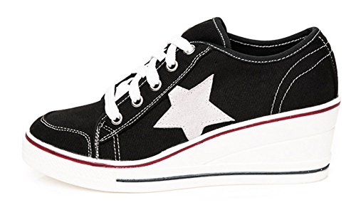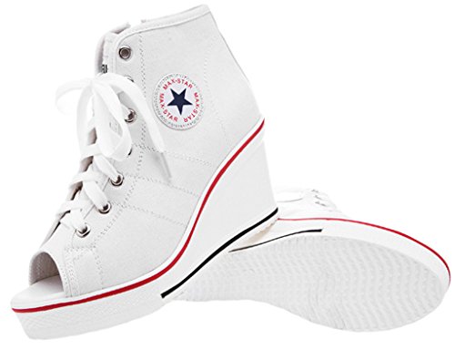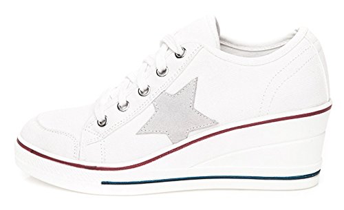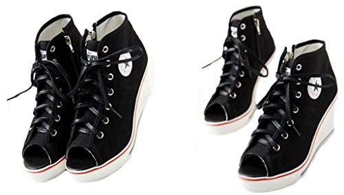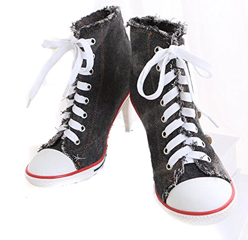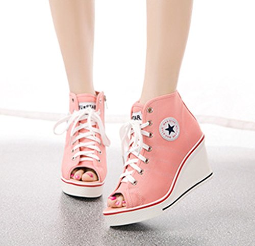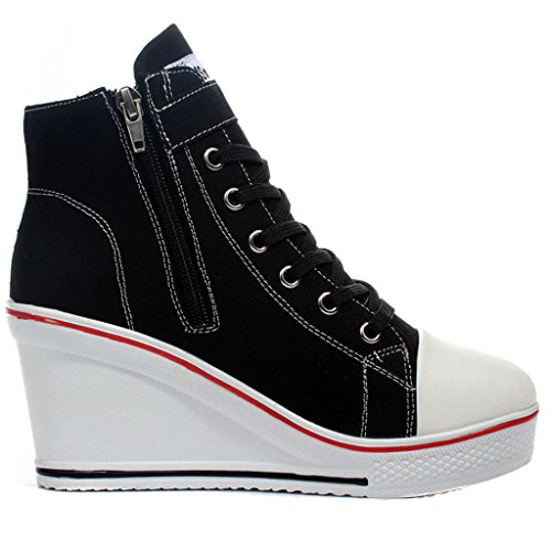 | Jiye Women's Canvas High-Heeled Fashion Sneaker Pump Shoes |