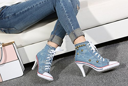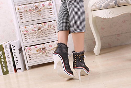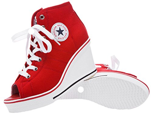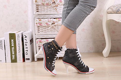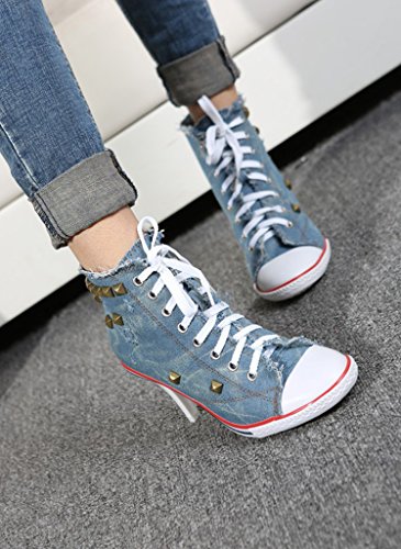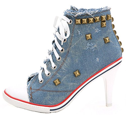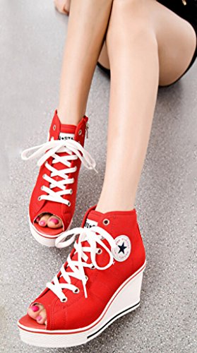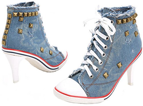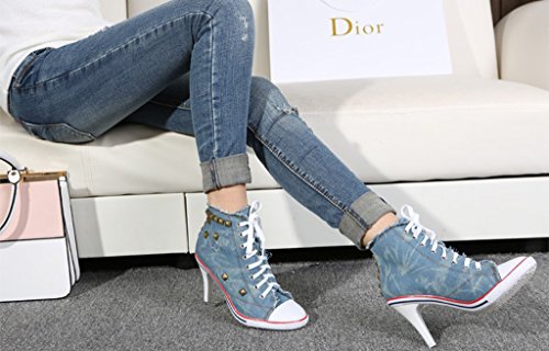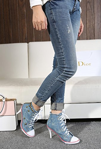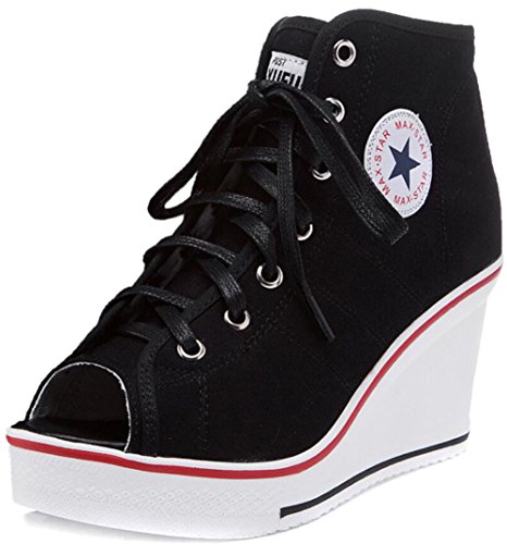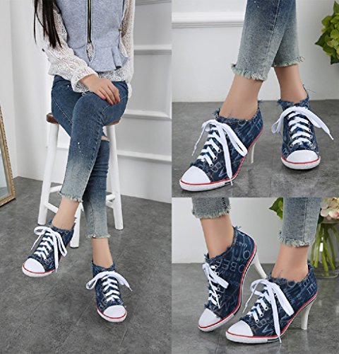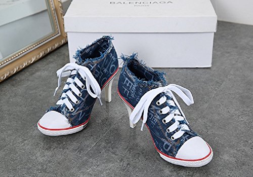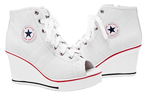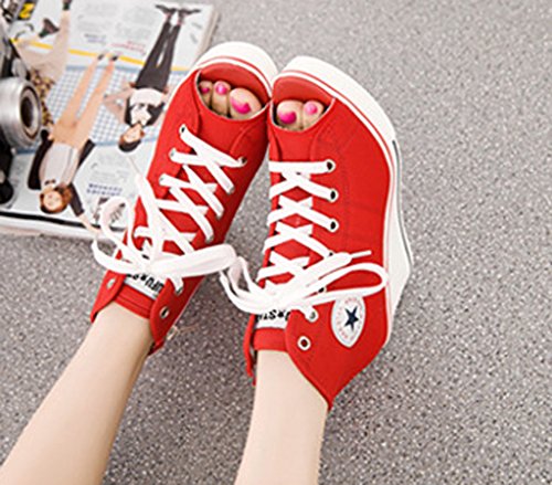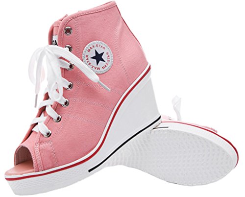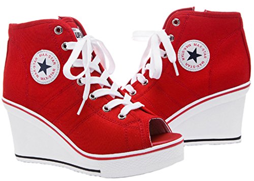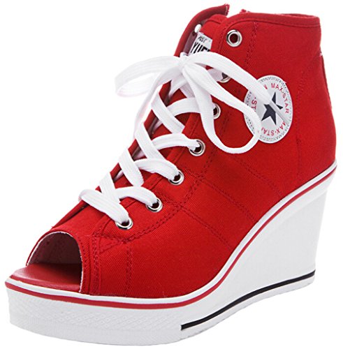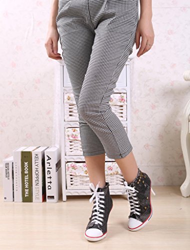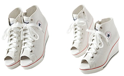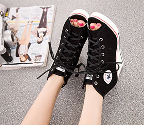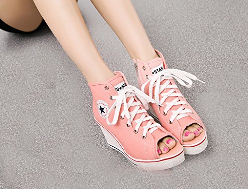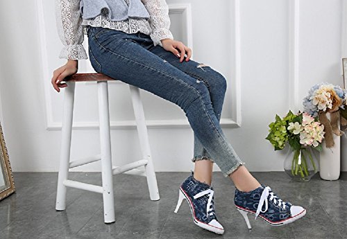 | Jiye Women's Canvas High-Heeled Fashion Sneaker Pump Shoes |