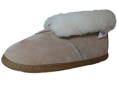 Binding : Apparel Product Description They will last for years to come. And the comfort is to die for...these Rubber-Soled Nonskid slippers provide complete comfort as the 100% Shearling Sheepskin Wool encases your feet with warmth from heel to toe. They are Genuine Australian Sheepskin inside with Suede Leather outside. The stitching is strong nylon thread. There are no shortcuts in the making of these hand-made slippers.