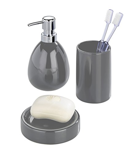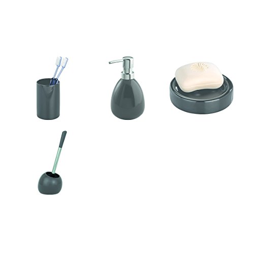 WENKO 20387100 Soap dispenser Polaris Grey, capacity 0.1 gal, Ceramic, 3.7 x 6.4 x 3.5 inch, Grey