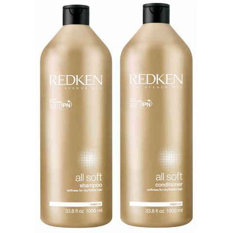 Transform dry hair and restore natural shine with the Redken All Soft Duo; a shampoo and conditioner that work in tandem to cleanse and nourish brittle damaged locks so you can experience calm manageable strands from root to tip. The Set Contains: Redken All Soft Shampoo (1000ml) Achieve smoother softer hair with the luxurious shampoo. Infused with a rich blend of rejuvenating oils including avocado to add luminous shine and argan to prevent dryness its gentle cleansing formula removes impurities without stripping moisture or causing dehydration. Developed with the brand's unique Interlock Protein Network for advanced silkening you can expect sleek salon-style results with every use. Redken All Soft Conditioner (1000ml) Formulated to moisturise repair and detangle hair the weightless conditioner leaves hair smoother and easier to manage. A combination of silk amino acids to strengthen hair cuticles and argan oil to reduce frizz make hair nourished and radiant. Redken's advanced conditioning properties replenish and restore dry weak hair to give you a healthy-looking shine.Feature
