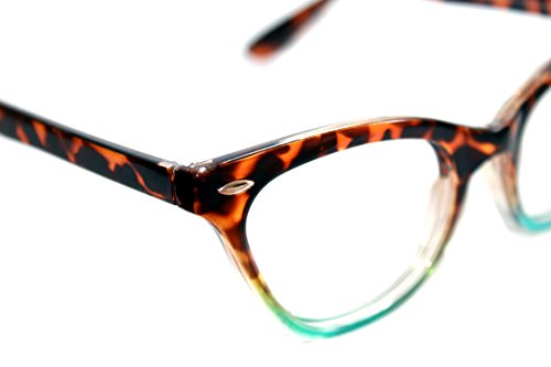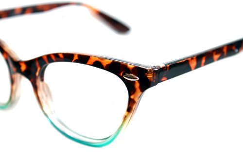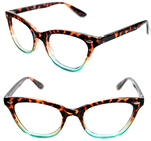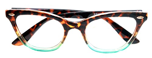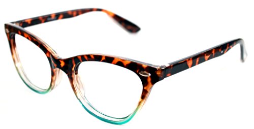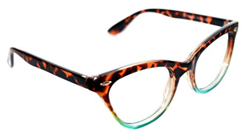 Small Women's Cat Eye Sunglasses 50's Vintage Retro Style Two Tone Ombre Brown Tortoise Turquoise Clear Frame